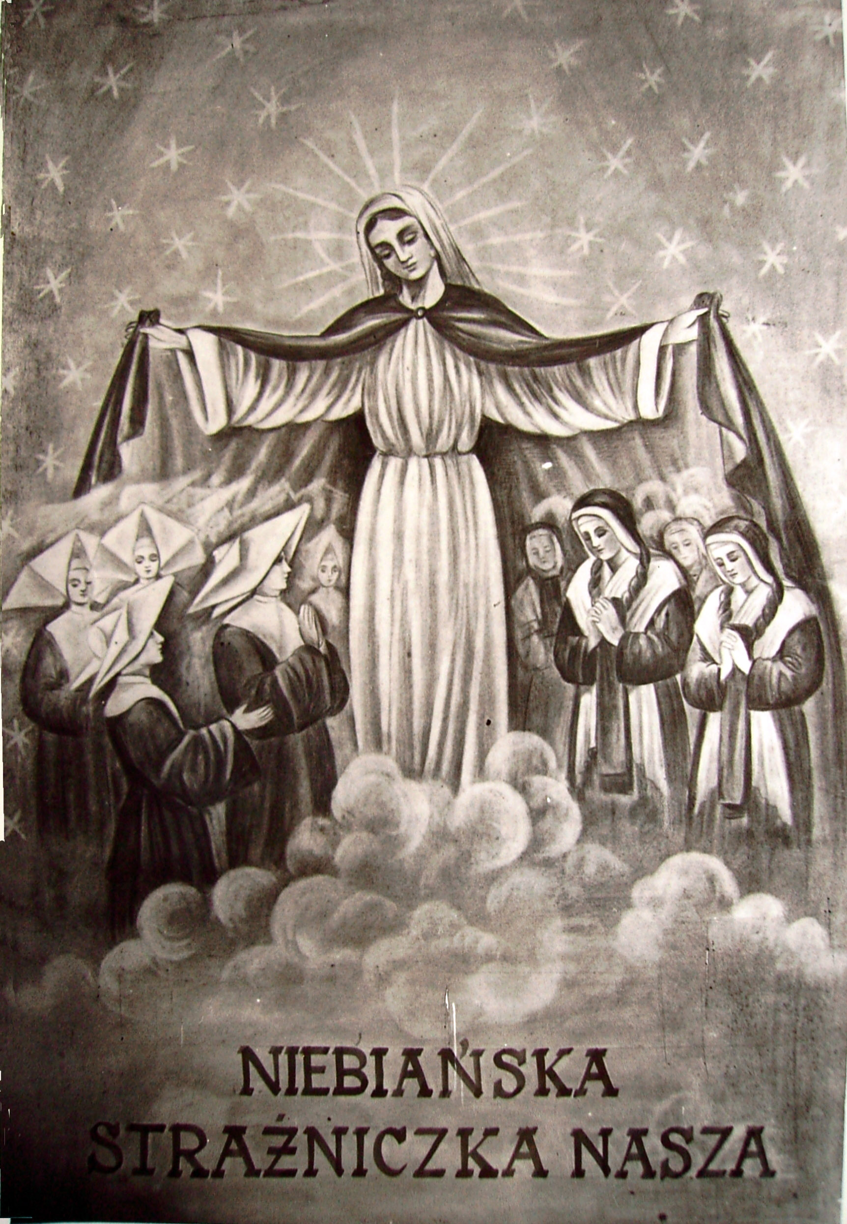 Virgin Mary protects Sisters and novices (Seminary Sisters); original in Poland