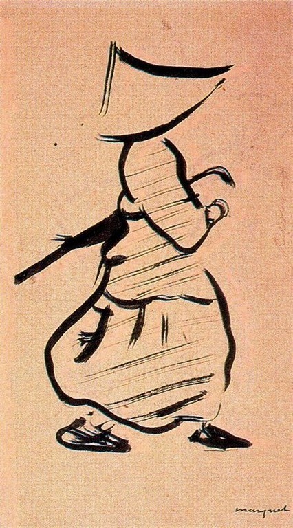 Sister walking, carrying an umbrella