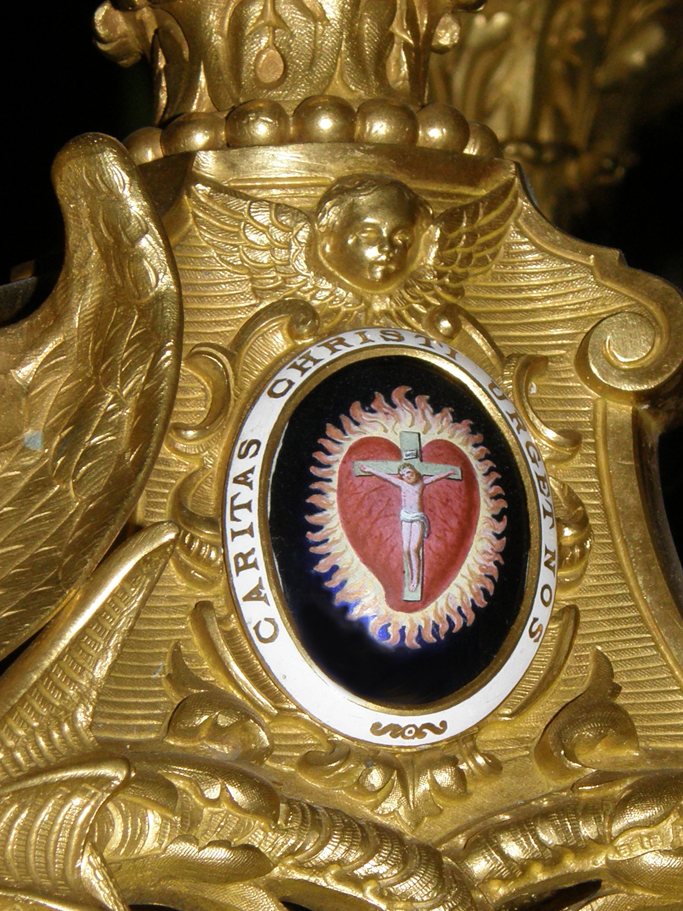 Originals, cloisonné enamel, on main altar candlesticks, Vincentian mother house chapel