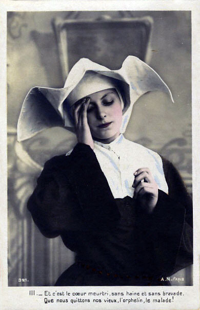 Text: With a bruised heart, without hatred or bluster, we are abandoning our elderly, the orphan, the sick Internet image Posed by actress