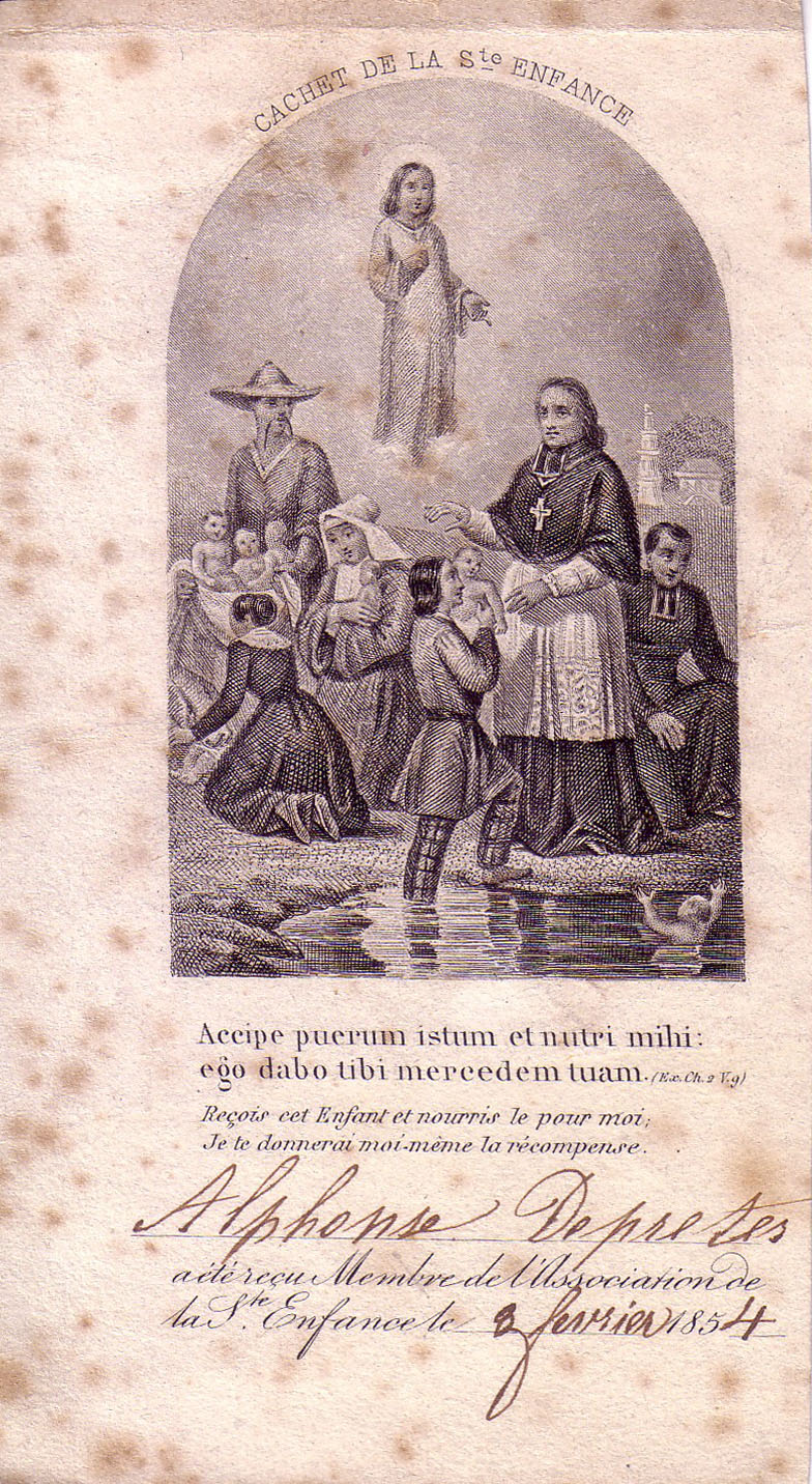 Membership holy card for Holy Childhood Association, 1854; in DePaul University collection