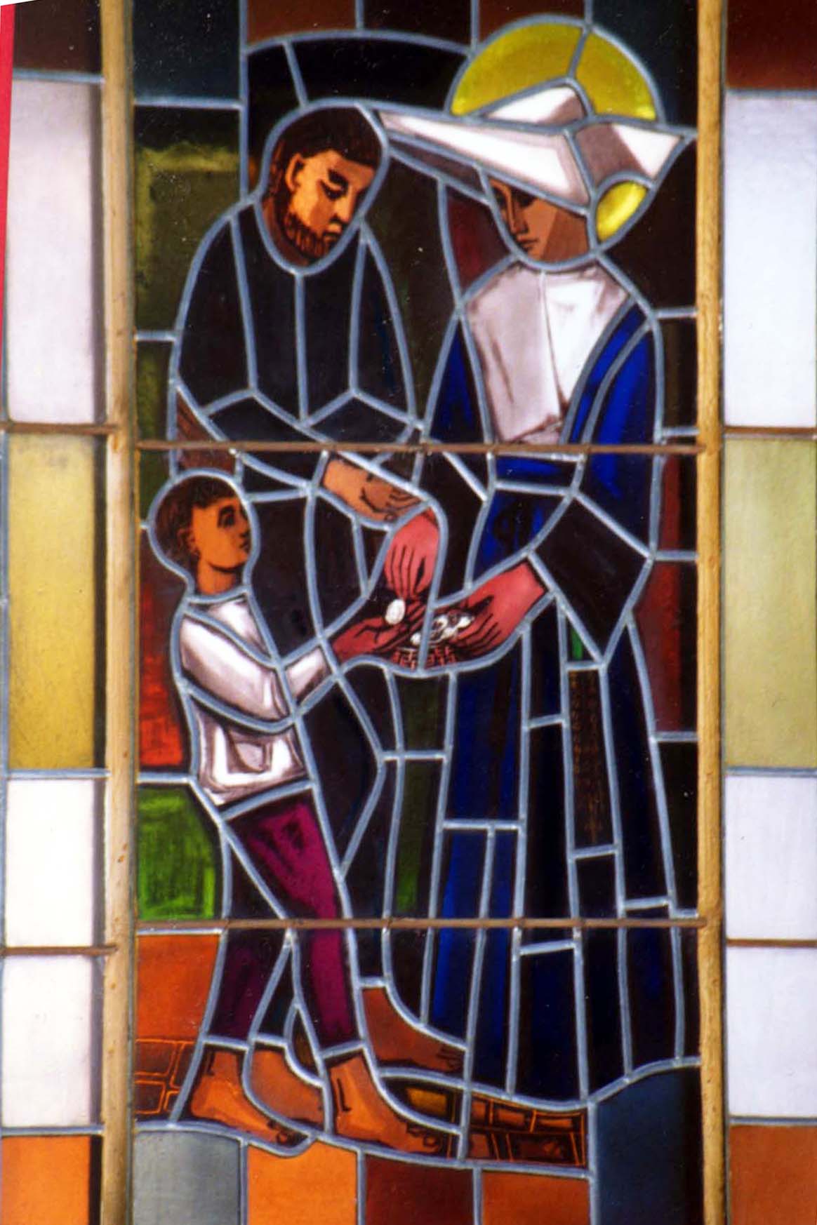 VdP, and Catherine Labouré, giving alms to a poor young person