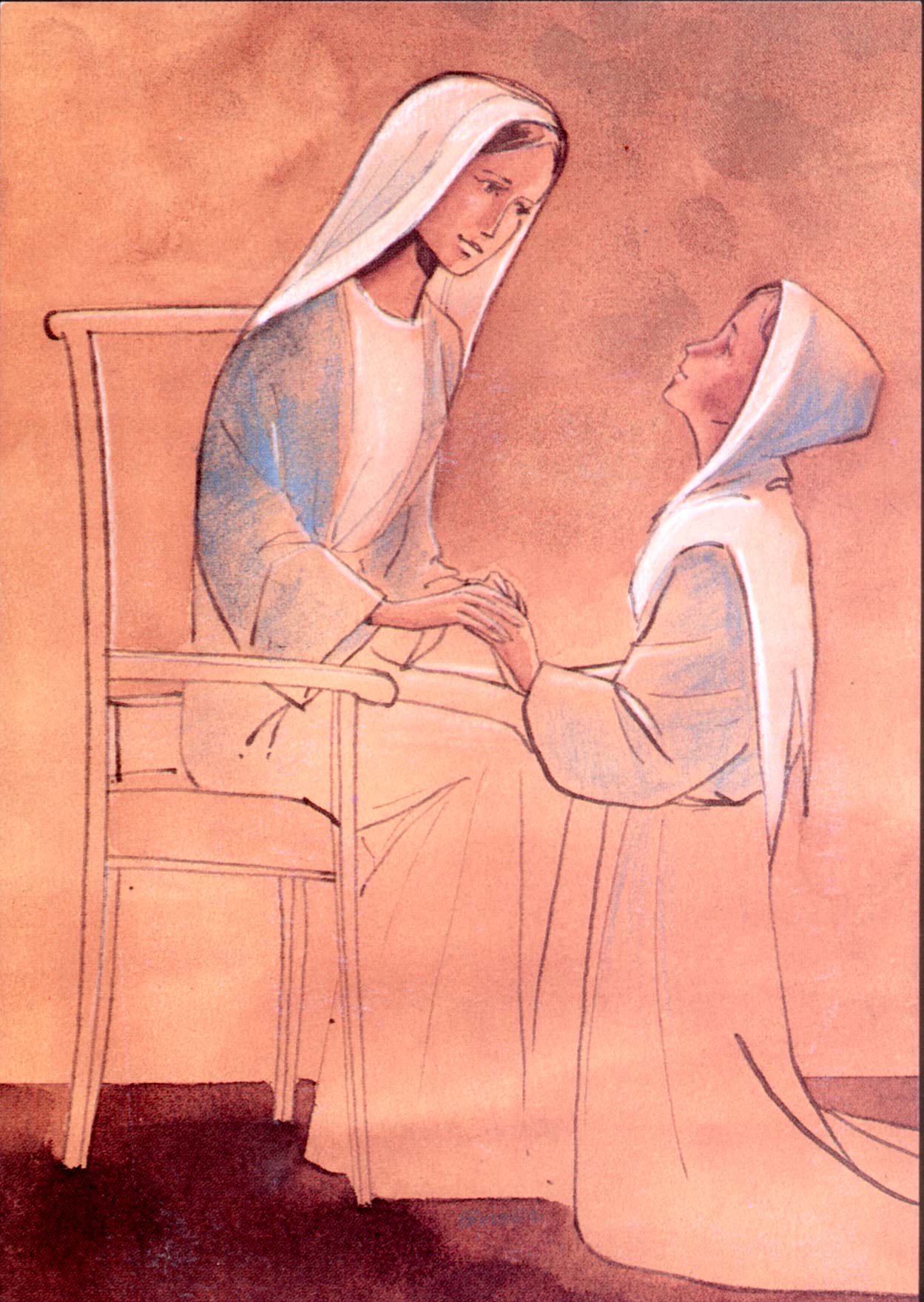 Catherine devant la Vierge Dessins, production Jeunesses Mariales franaises