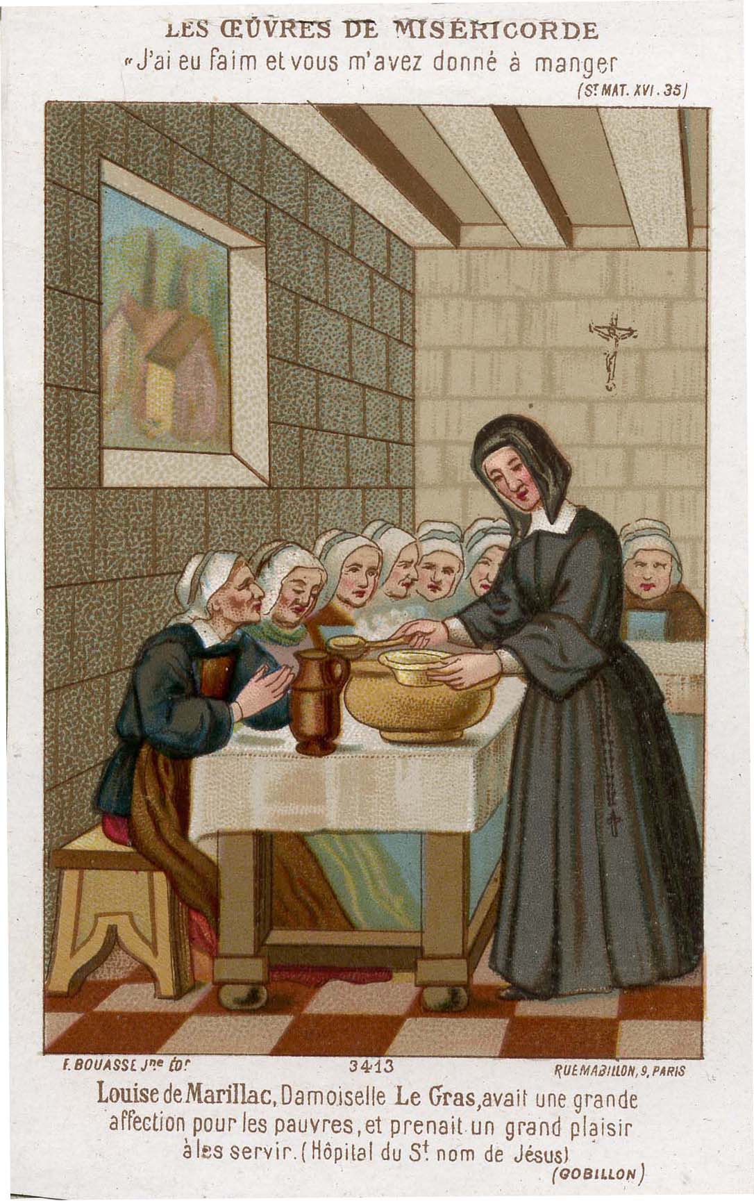 Text: Louise de Marillac, Damoiselle Le Gras, had a great love for the poor, and took great pleasure in service them (Hospital of the Holy Name of Jesus)