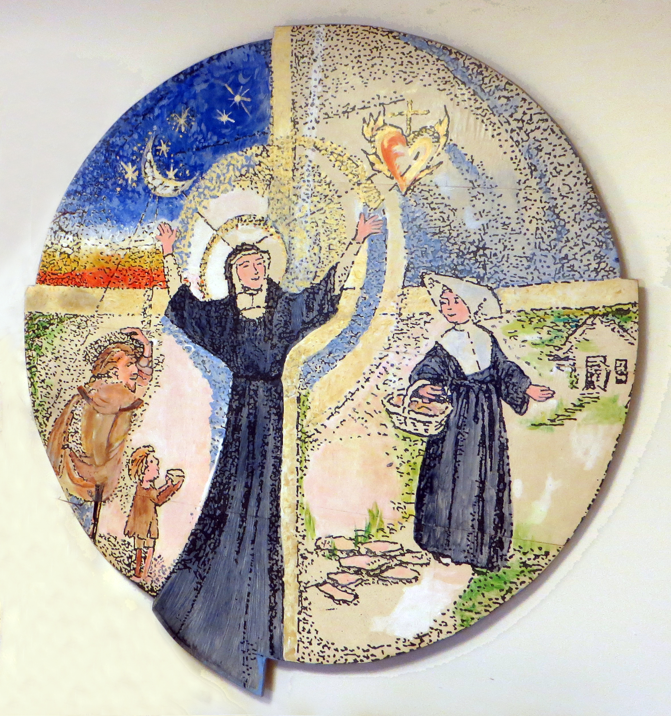 LdM with Sister, poor, burning heart of charity emblem In DC house, Albany, NY