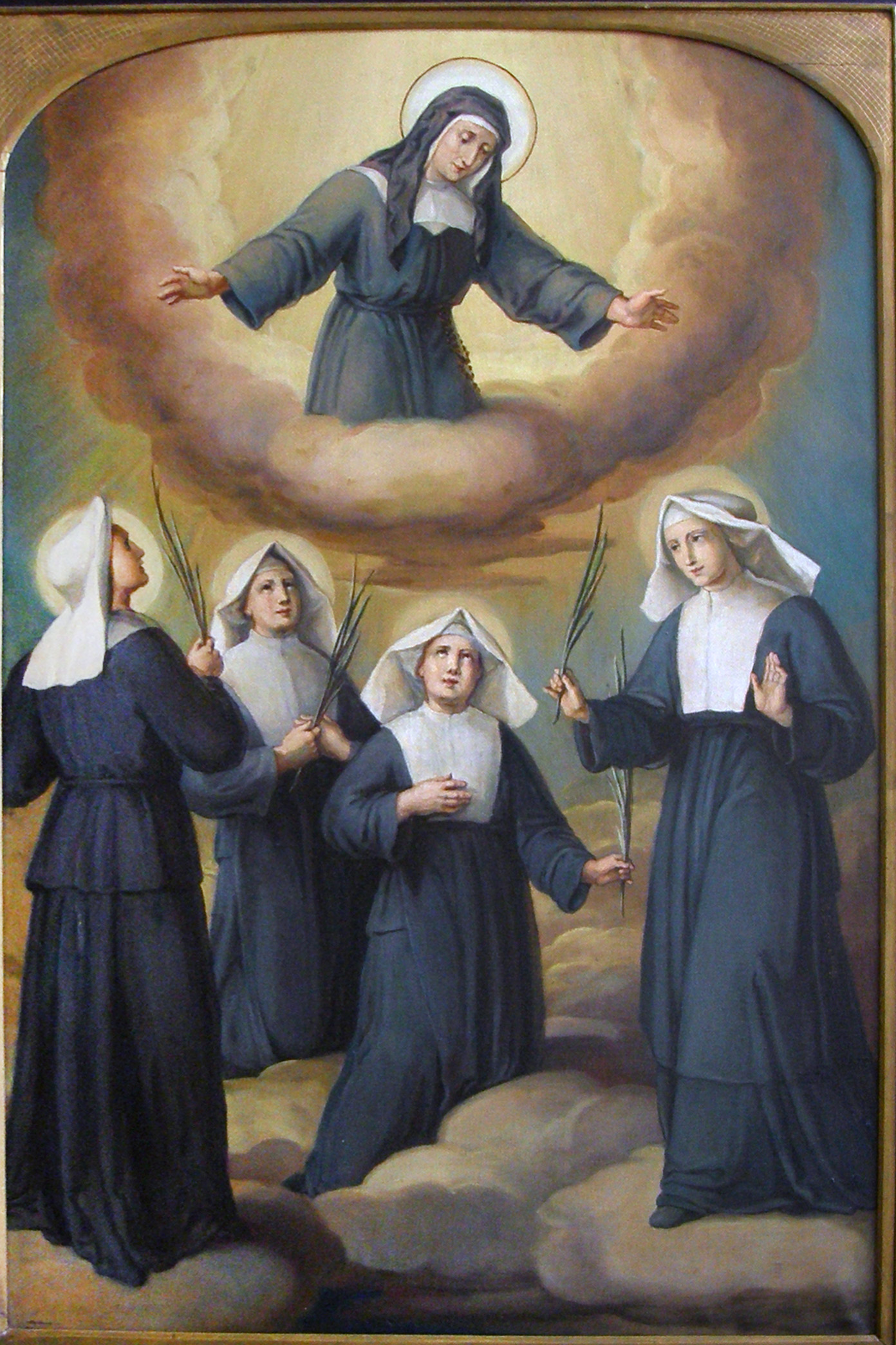 Louise de Marillac blesses from heaven the four martyrs of the Revolution, holding palm branches; original in mother house of Sisters of Charity, Gumpendorf