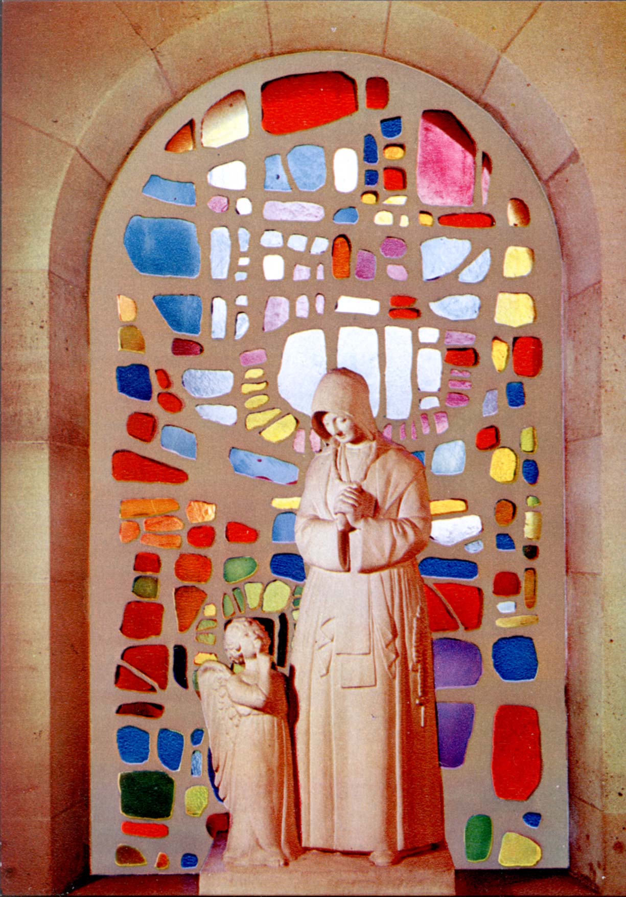 Catherine with the angel; statue and window