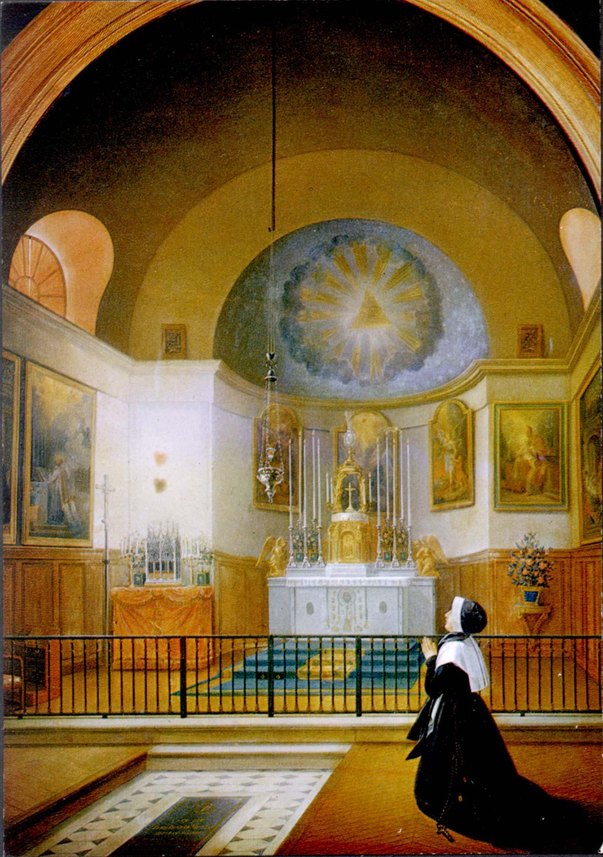 Catherine LABOURƒ : Vision du cÏur de st Vincent, avril 1830 Toile de LECERF, 1835, 140 rue du Bac, L'un des premiers tableaux des apparitions de Marie ˆ Catherine LabourŽ en 1830.