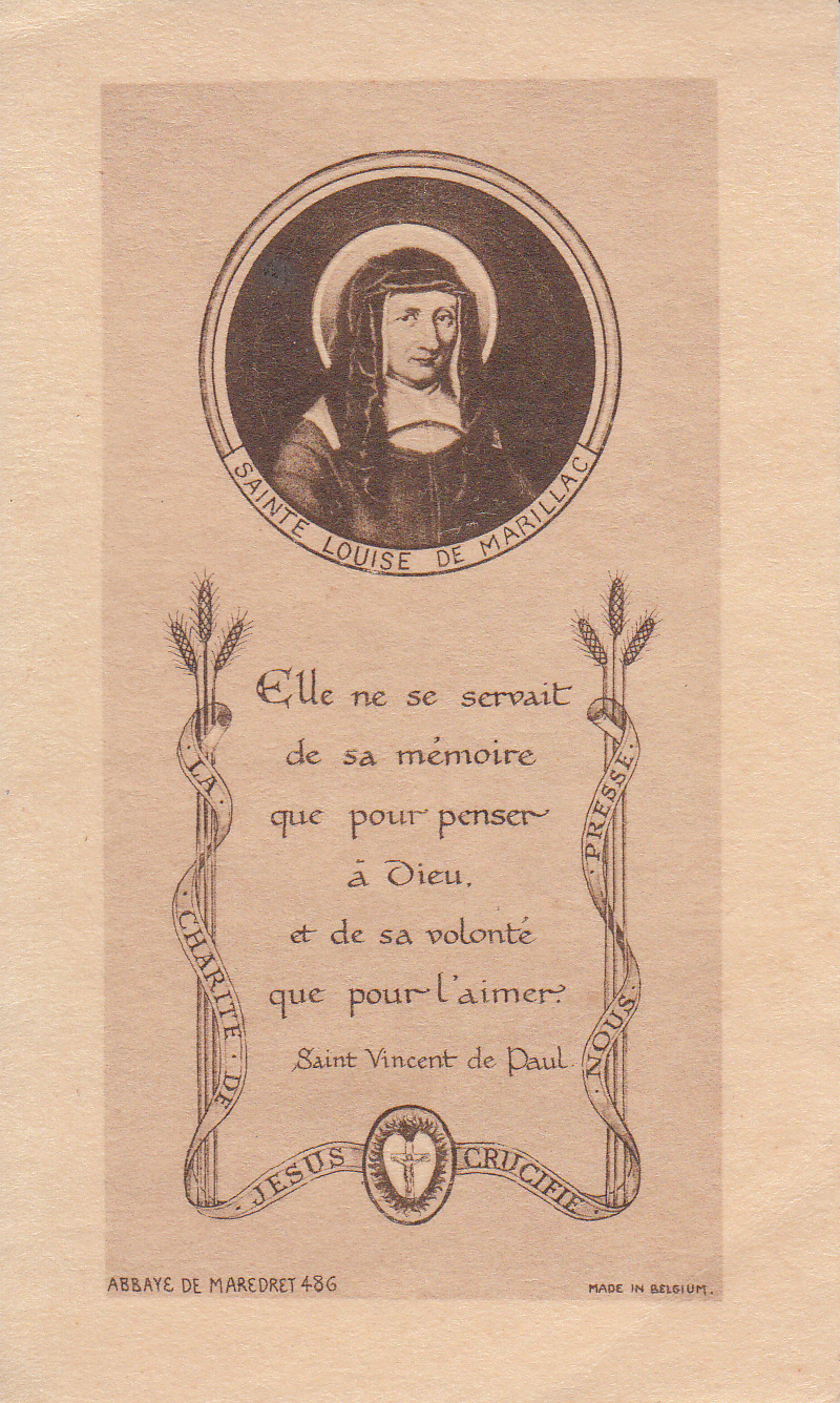 Text: She used her memory only to think of God and of her will to love him. (On ribbon): The charity of Jesus Crucified moves us on.