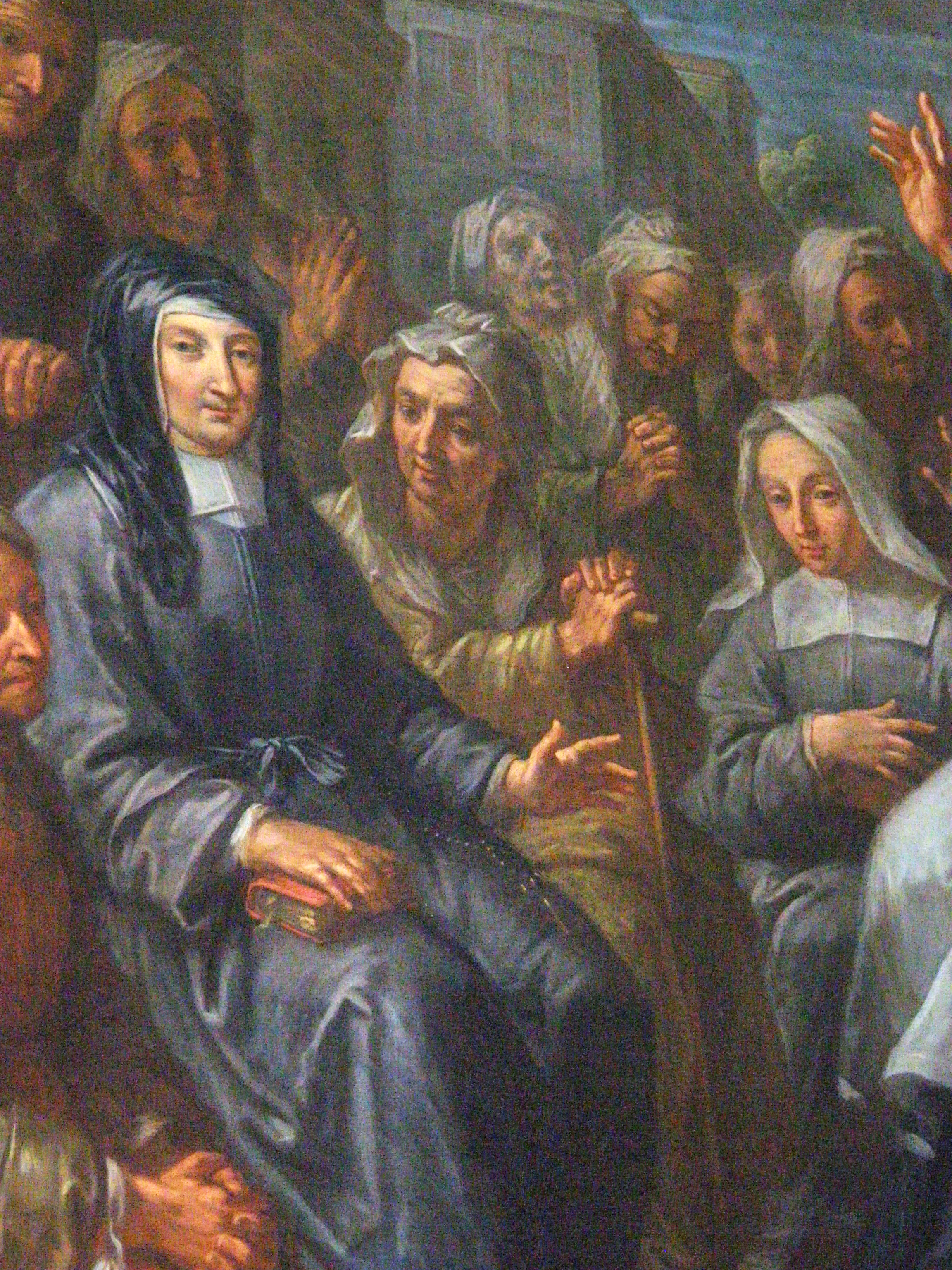 Painted from engraving; ca. 1861; original in Vincentian mother house, Paris. Sisters in grey habit