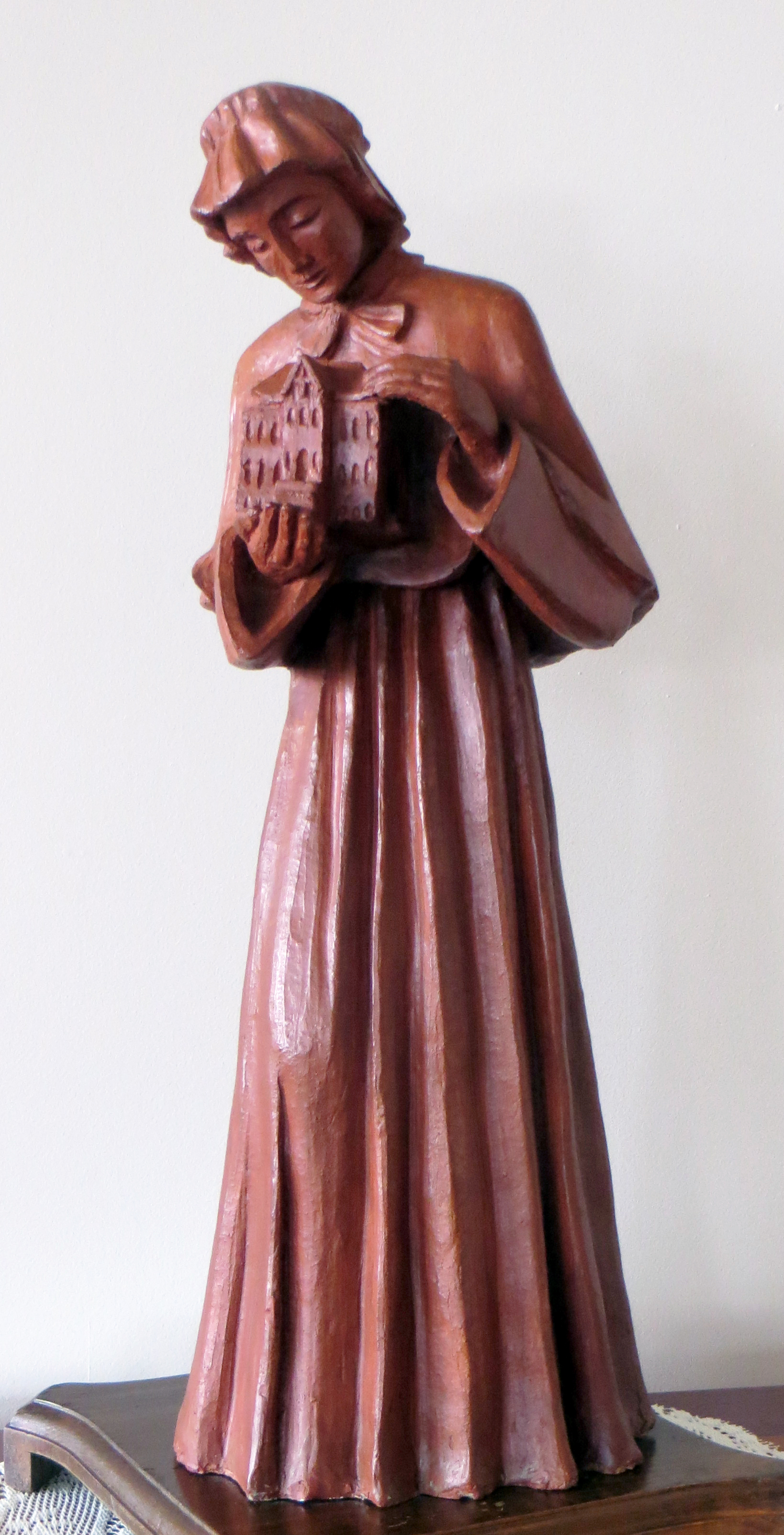 Elizabeth Seton holding model of original mother house, Seton Hill