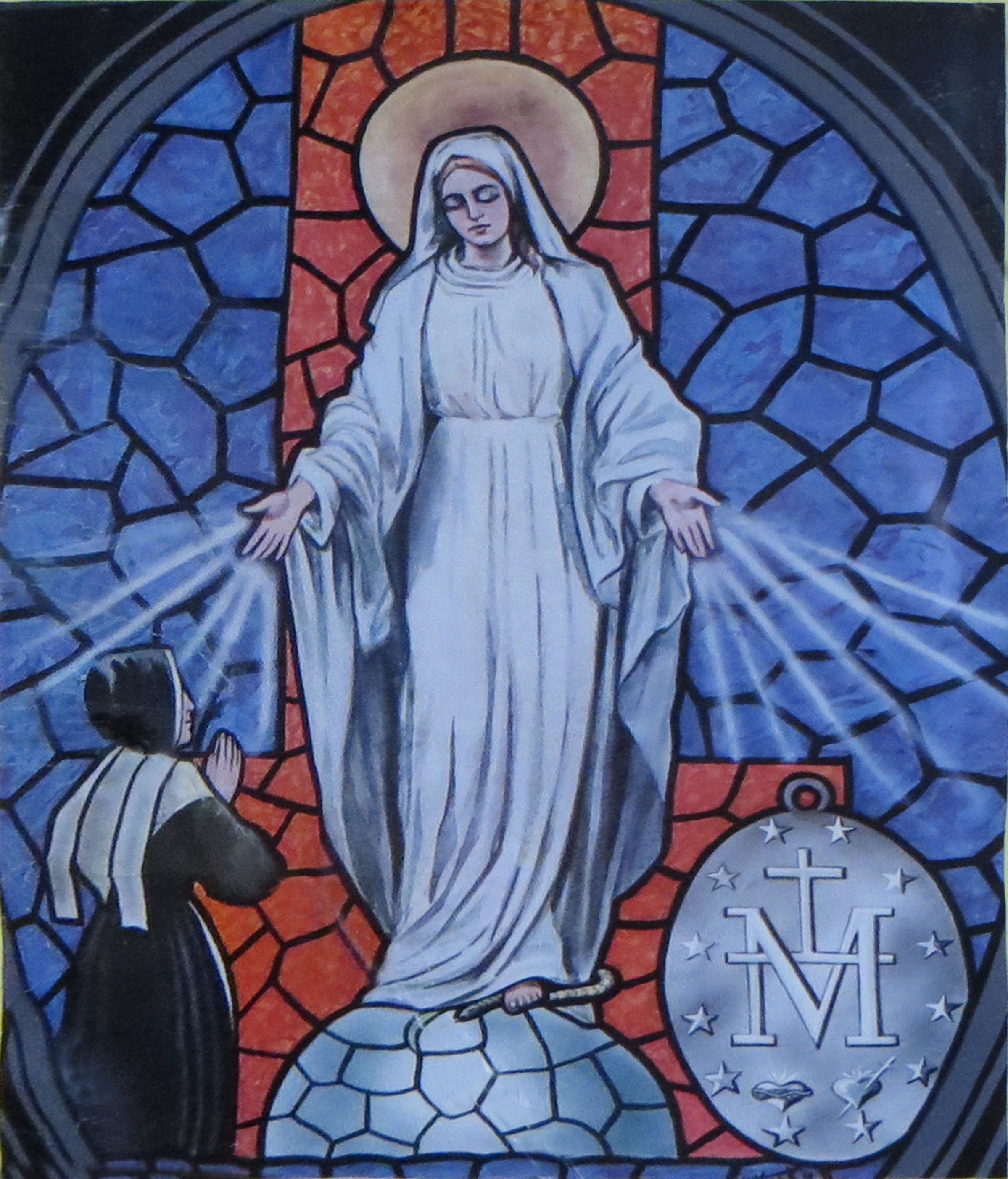 Drawing in form of stained glass window; printed paper