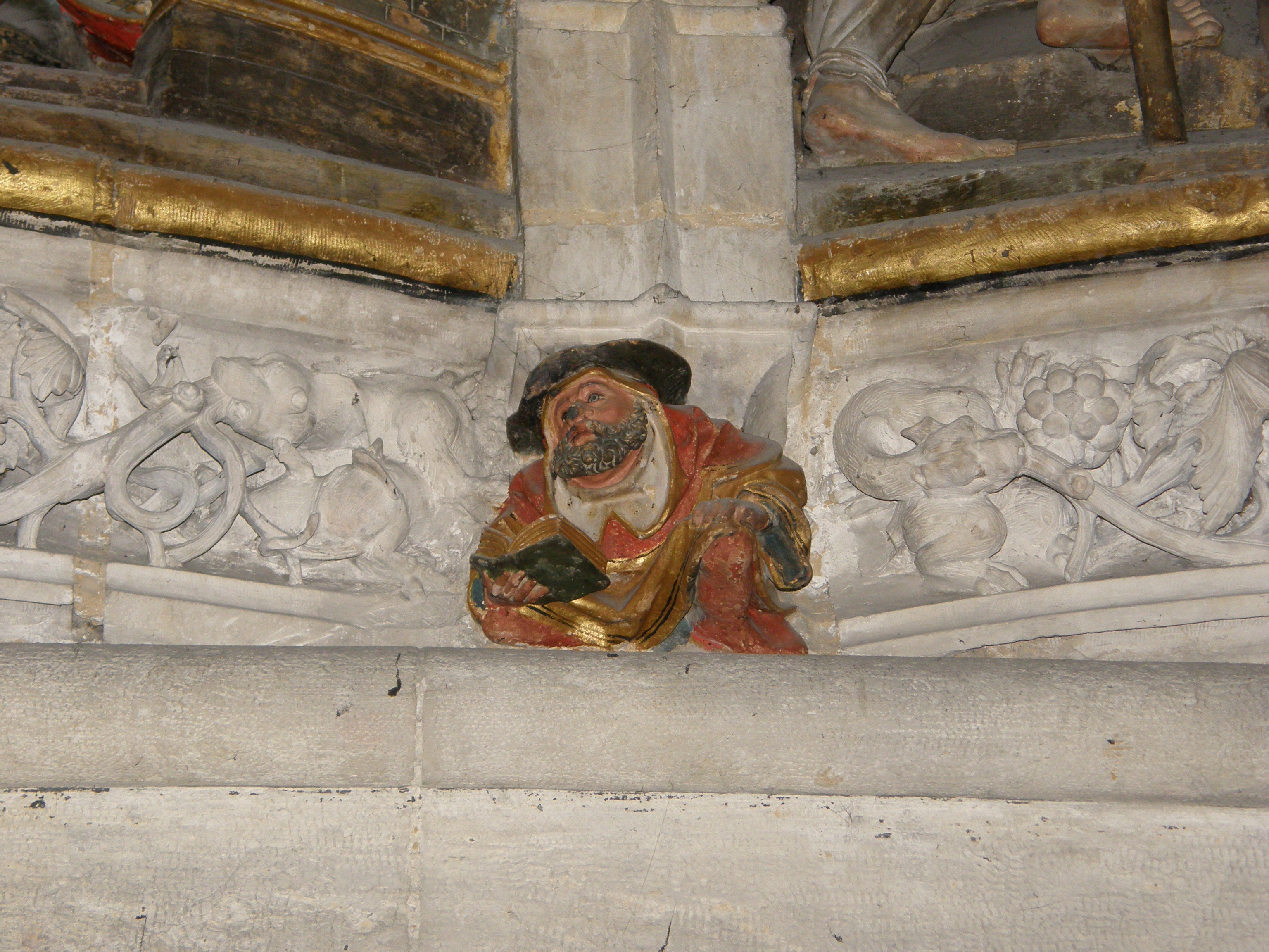 Amiens, cathedral, Zachary story 04, priest with book.JPG