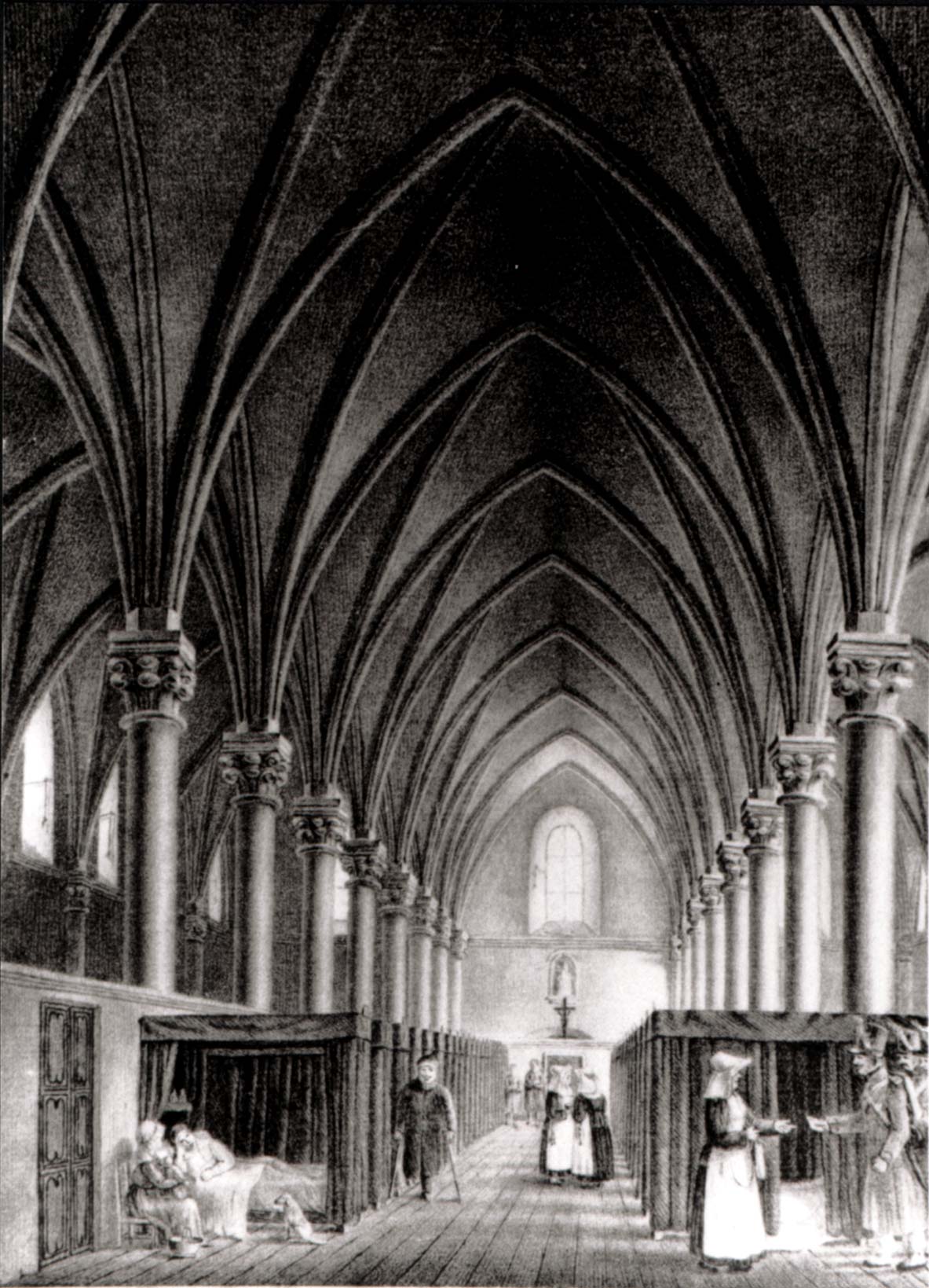 L'H™pital Saint-Jean ˆ ANGERS, l'intŽrieur au temps de la RŽvolution.