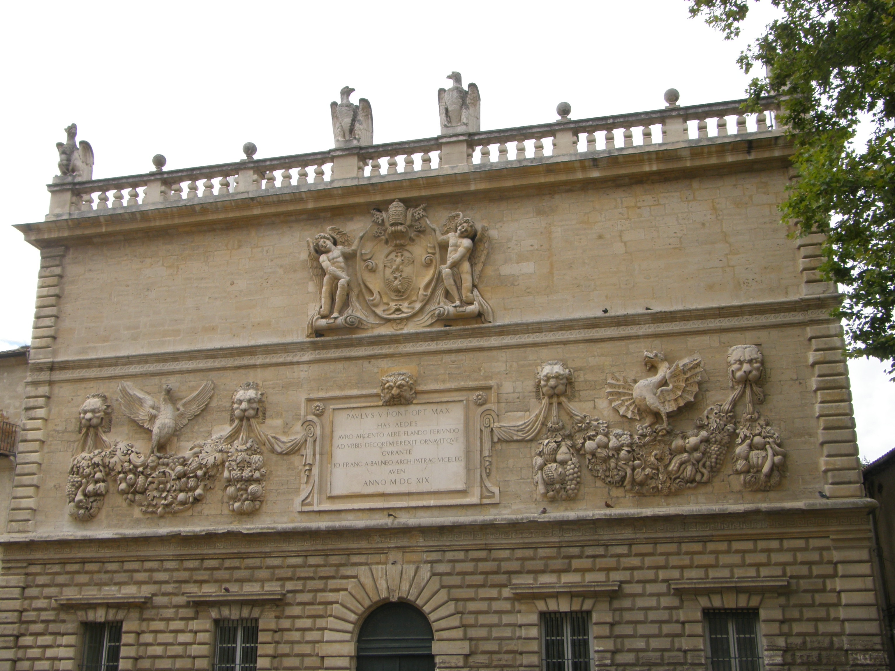 Garlands, balustrade, masks, angels, papal crest, etc.