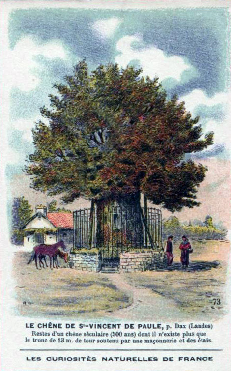 Remains of a centuries-old oak, 500 years, with only the 13 m. trunk, supported by masonry and supports. [Tree is still living]