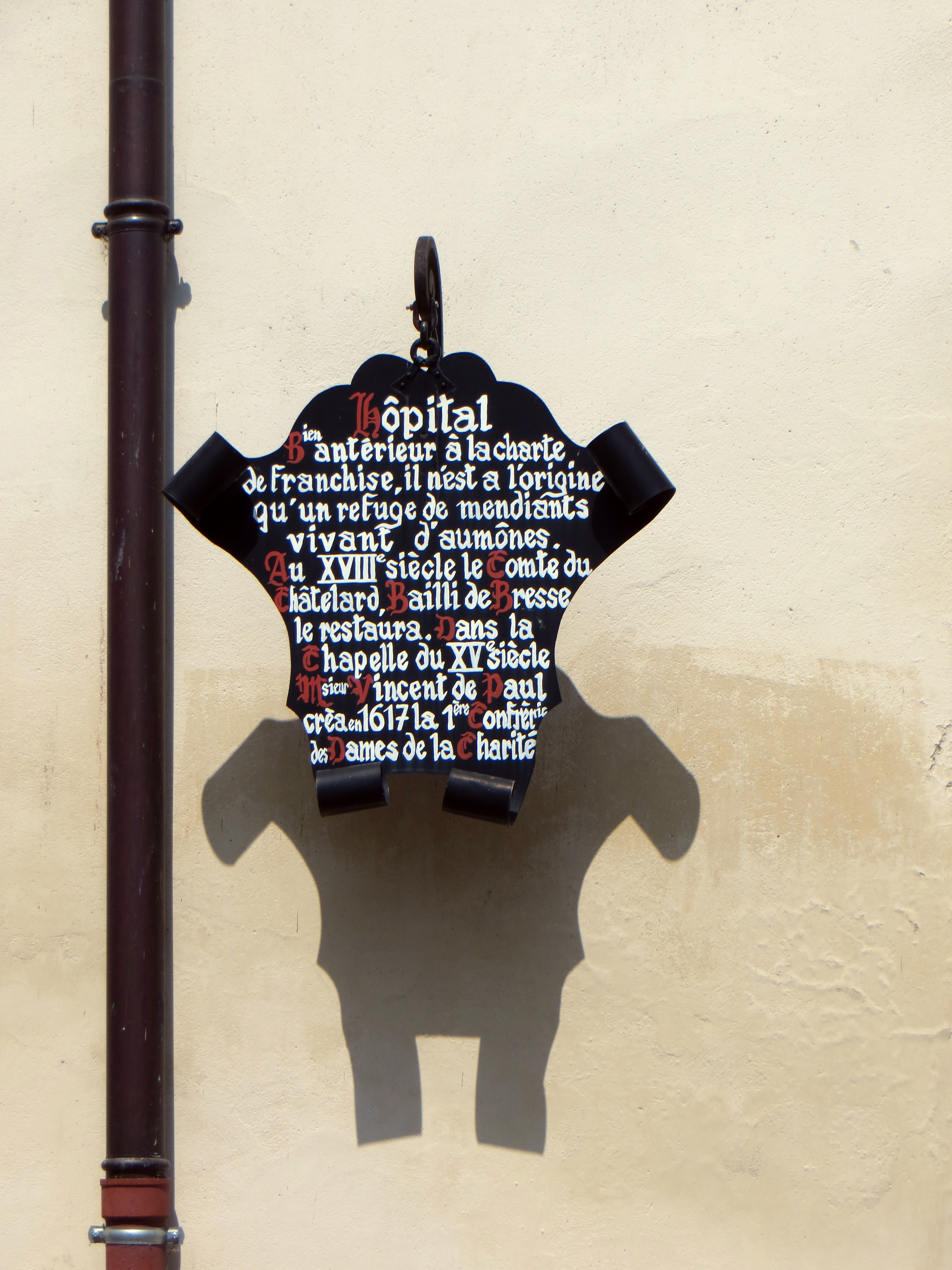 Text: Long before the decree granting freedom, the hospital was only a refuge for beggars, living from alms. In the 18th century, the Count ... restored it. In the 15th century chapel, VdP created in 1617 the first Confraternity of the Ladies of Charity.