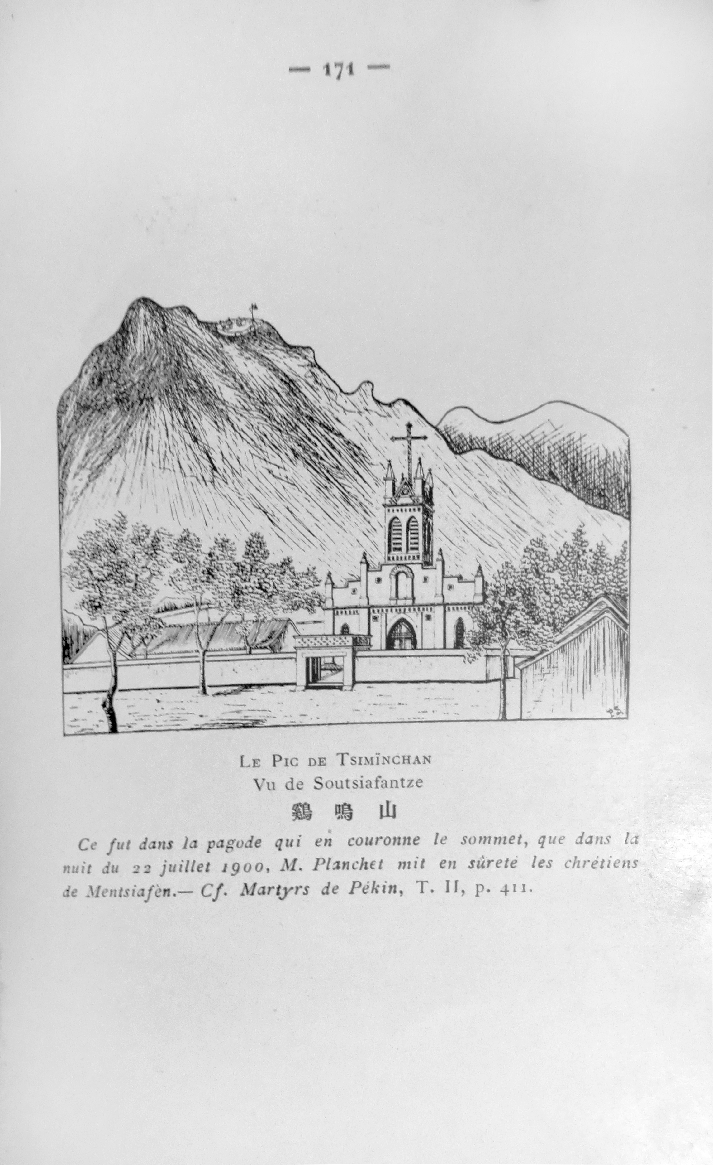 Source: JM Planchet, Les Lazaristes a Suanhoafou (Beijing 1927); view of pagoda on mountain where Fr. Planchet placed Christians in 1900 from attack by Boxers