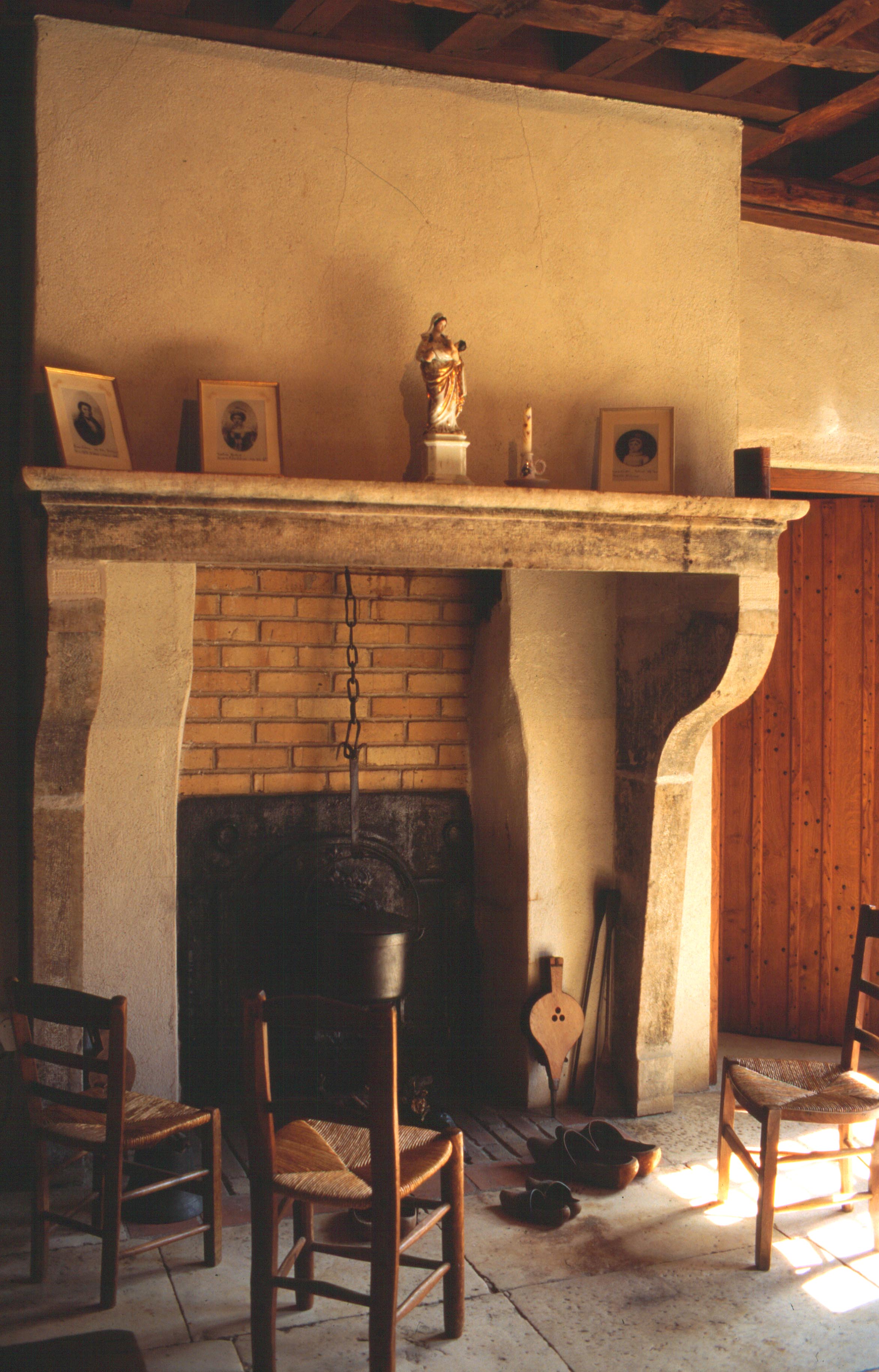 FAIN : cheminŽe de la salle familiale LabourŽ, Statue de la Vierge qu'a priŽ Catherine aprs la mort de sa mre. Sur la droite, la porte de la chambre des parents LabourŽ.