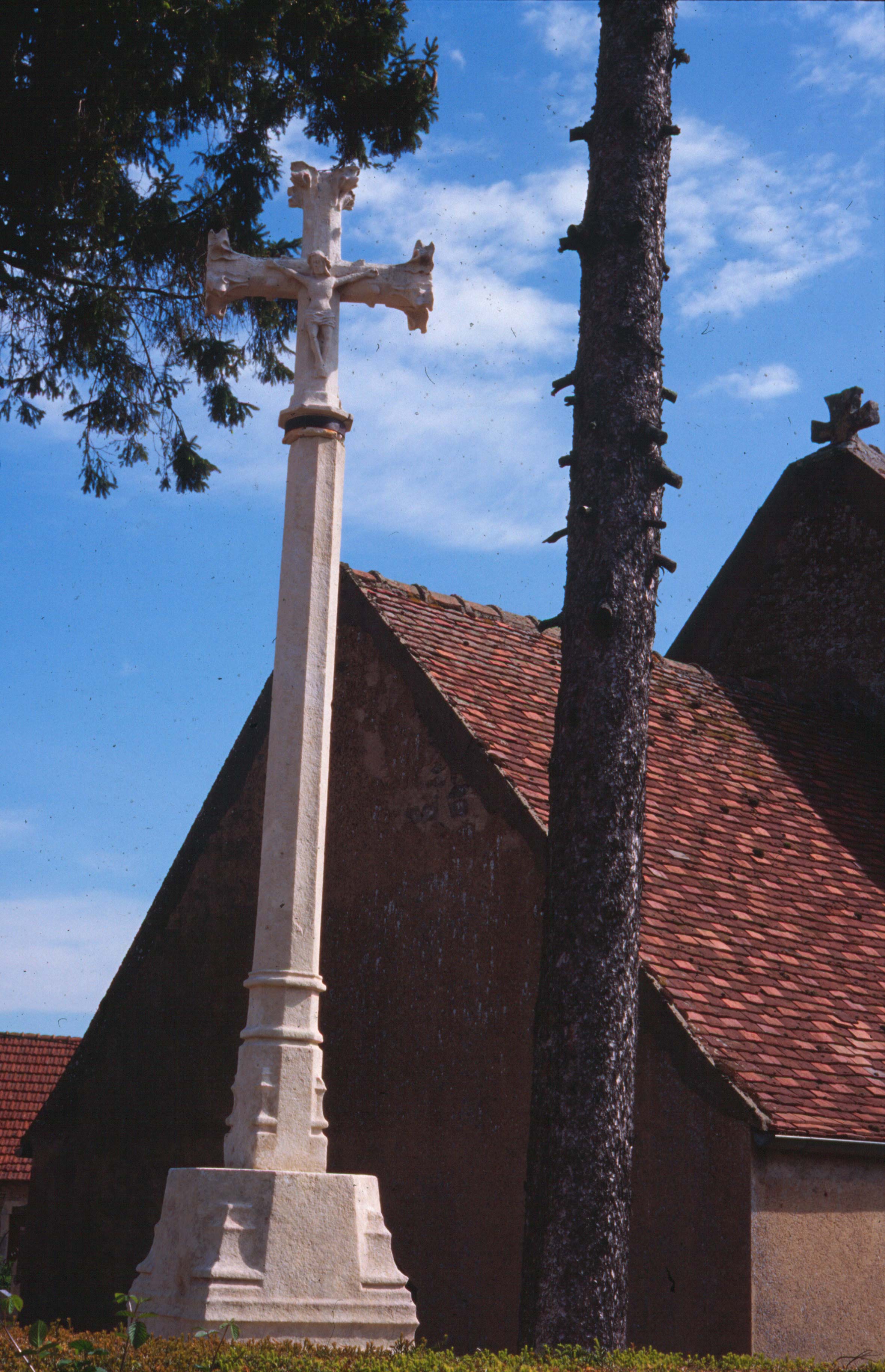 FAIN : la croix du cimetire, au fond l'Žglise,