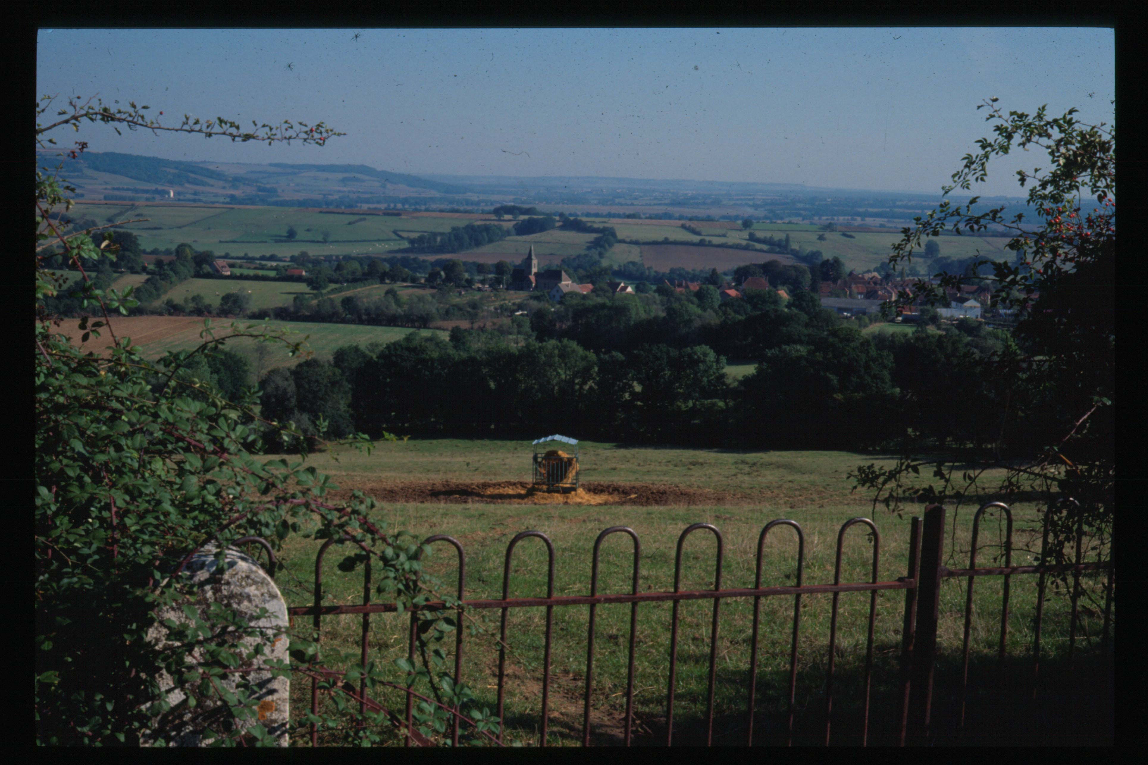 Moutiers-St-Jean vue de la route de Fain, au fond les collines de Bourgogne,