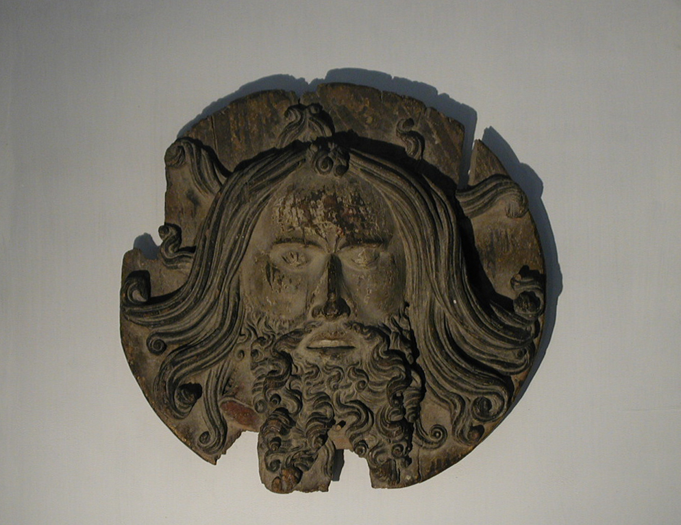 Folleville, church int., wooden head of John Baptist.JPG