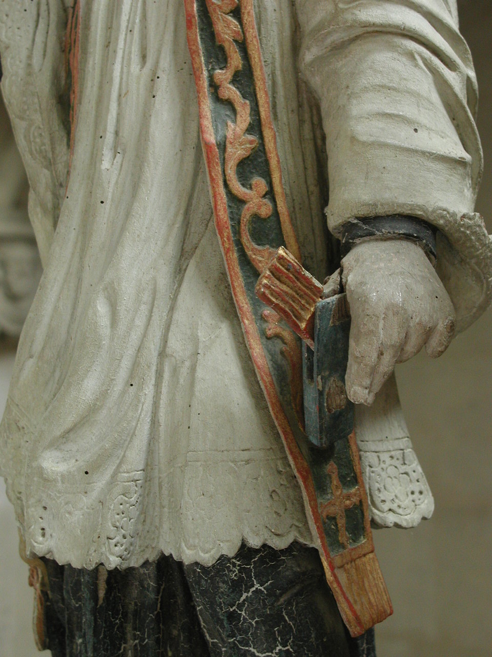 Folleville, church int., old SV statue, 4 hand.JPG