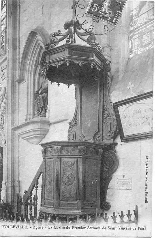 Folleville, post card, church int., pulpit, 2.jpg