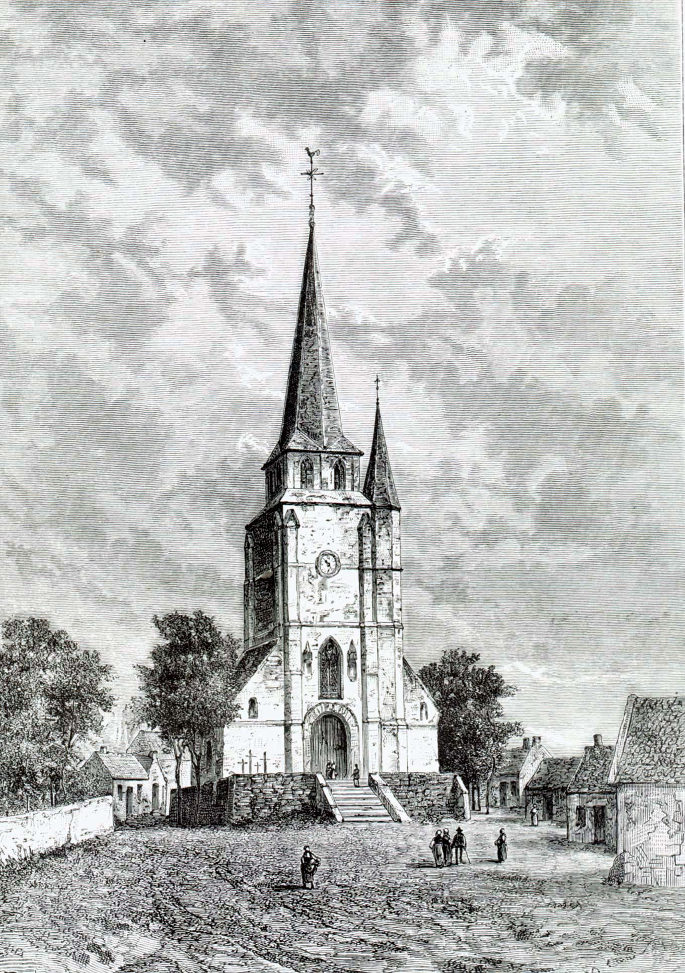 ƒglise de Gannes (Oise) Gravure ancienne.