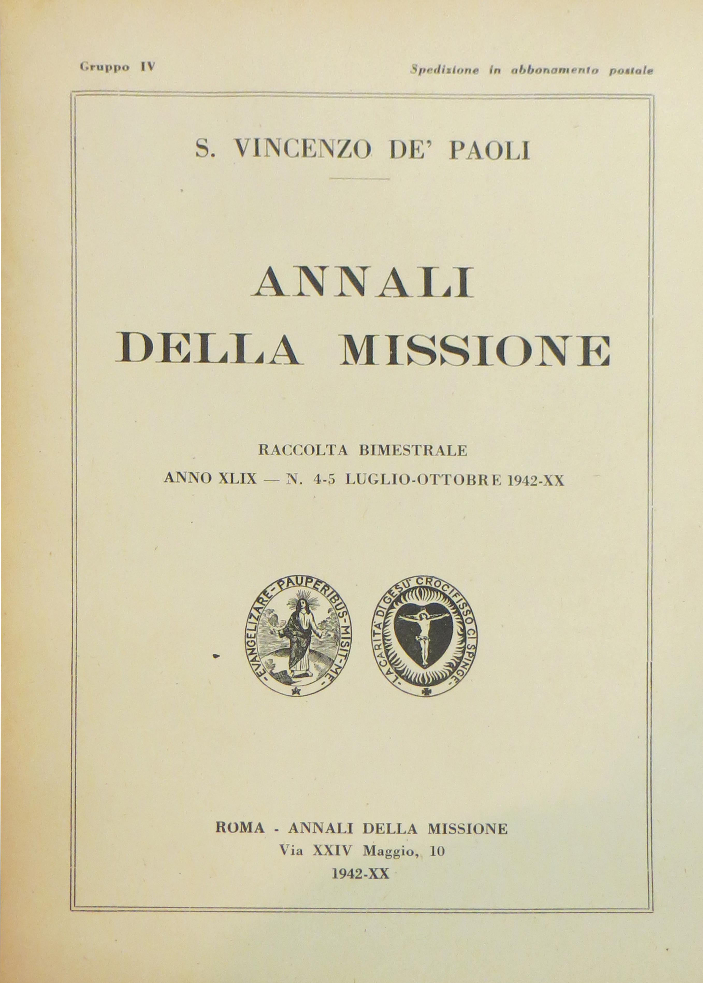 Cover of Italian Annales, with date 1942-XX, referring to the twentieth year of the Fascist government, a required date on publications.