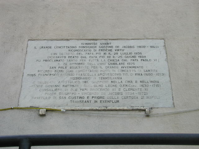 Recalls De Jacobis and others: Archbishop Frascella, Fr. Leone, Giuseppe Vincenzo de Jacobis (1794-1872), brother of Justin, prior of the Carthusians in Naples.