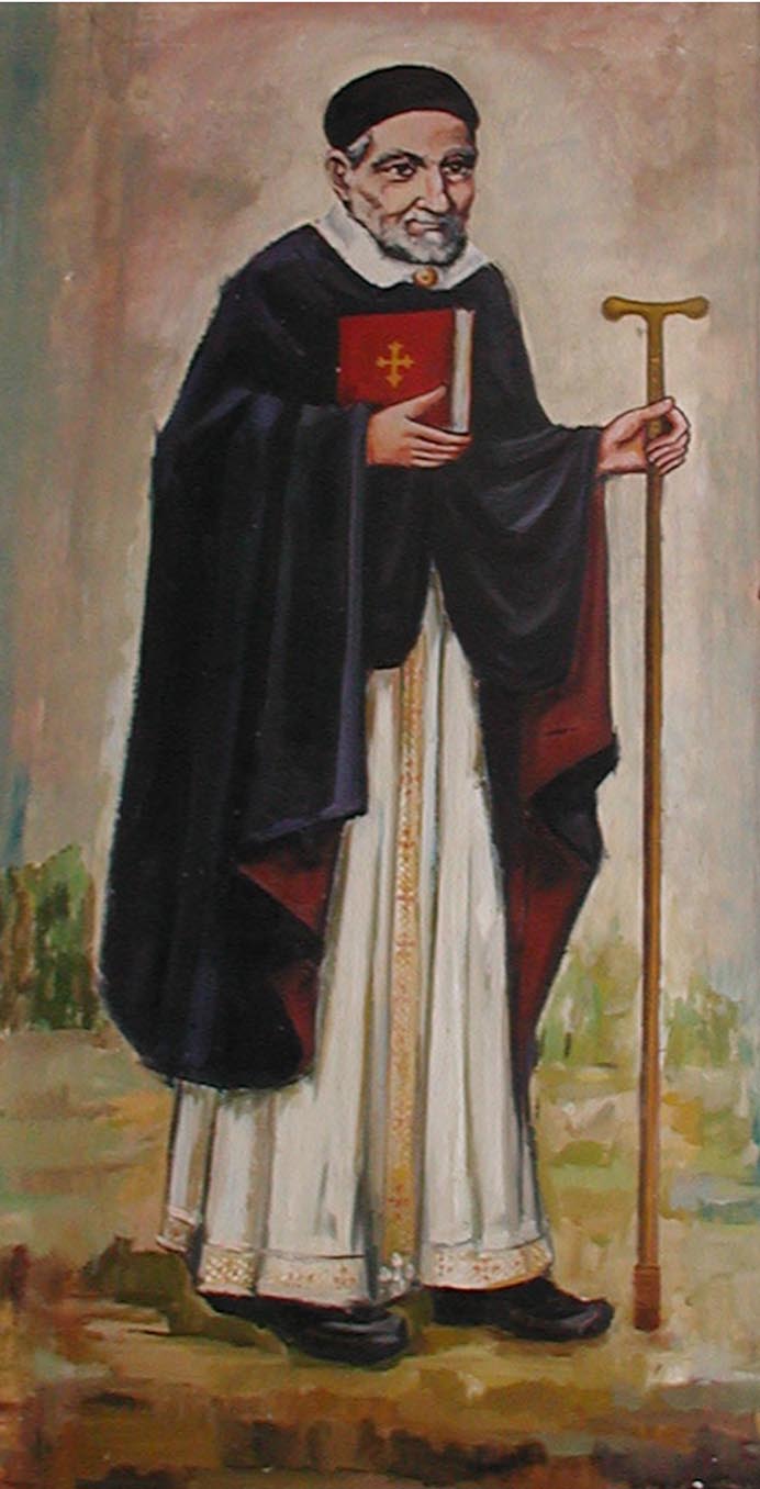 Detail of chapel mural, Vincent de Paul in Ethiopian vestments, holding book and monk's staff; original in Lazarist House chapel, Addis Abeba