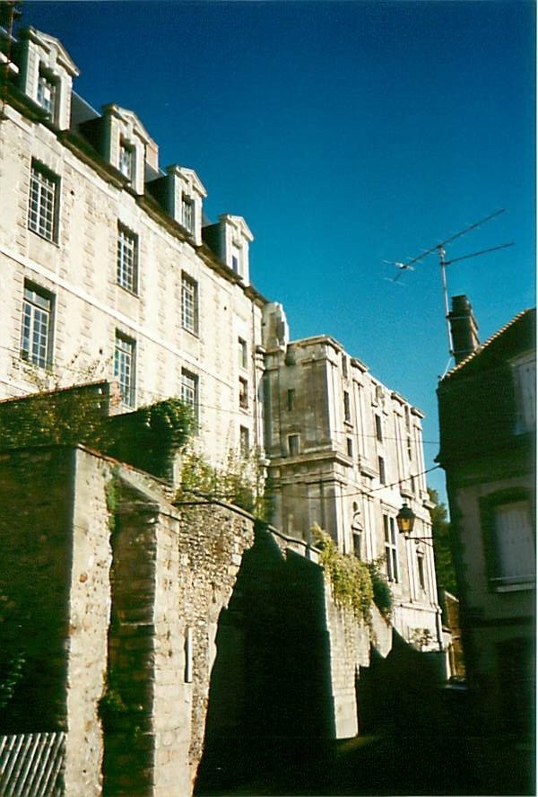 Joigny, Gondi castle from street below.jpg