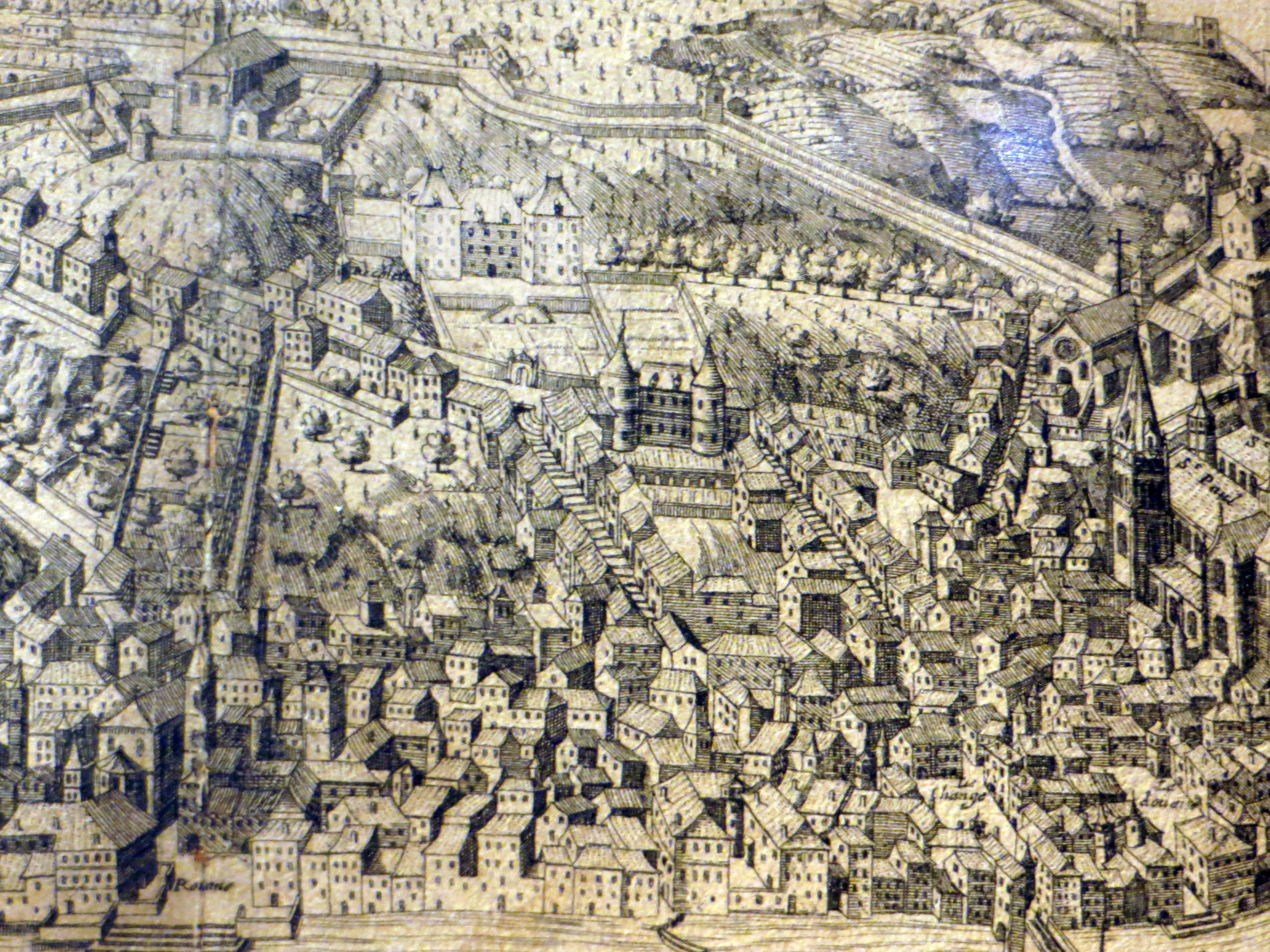 Early engraving of original buildingsIn Lyons, Musée Gadagne