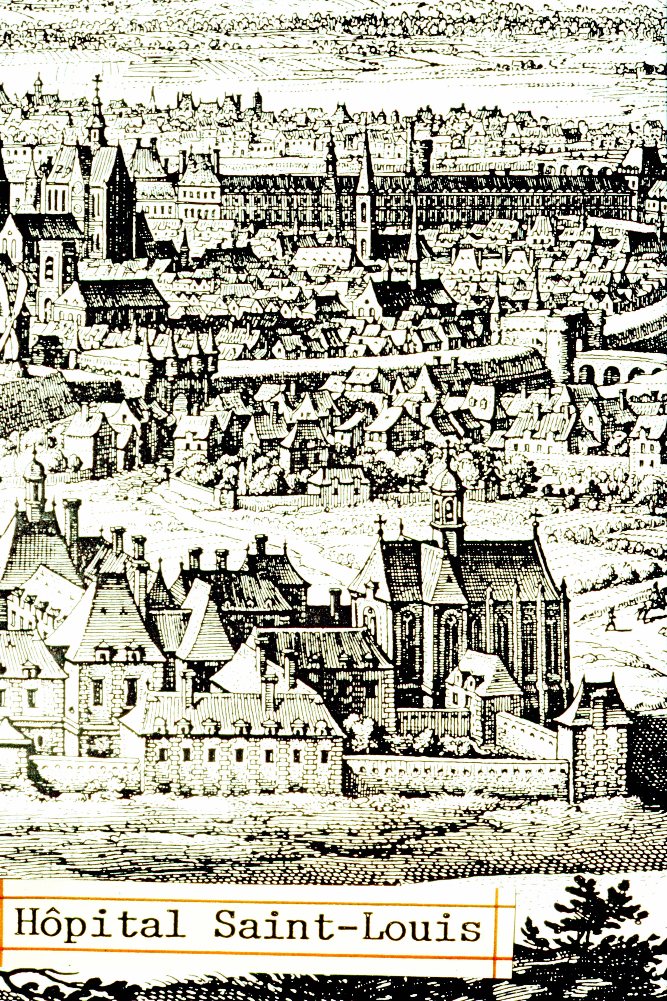 H™pital Saint-Louis ˆ Paris, au premier plan, dans le fond la" Galerie du bord de l'eau" du Louvre,