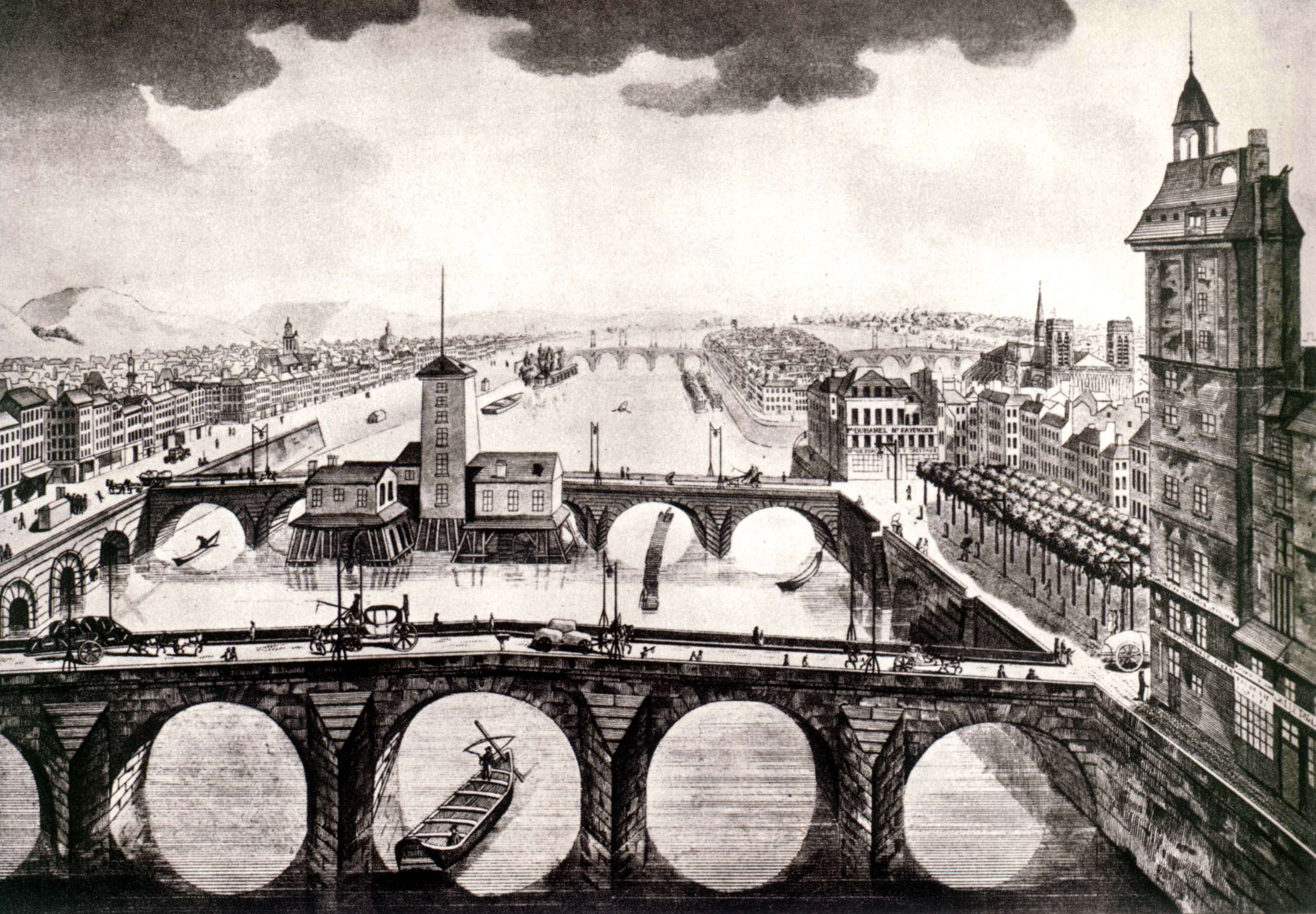 Pompe sur le Pont Notre-Dame Gravure de LecÏur, BN.