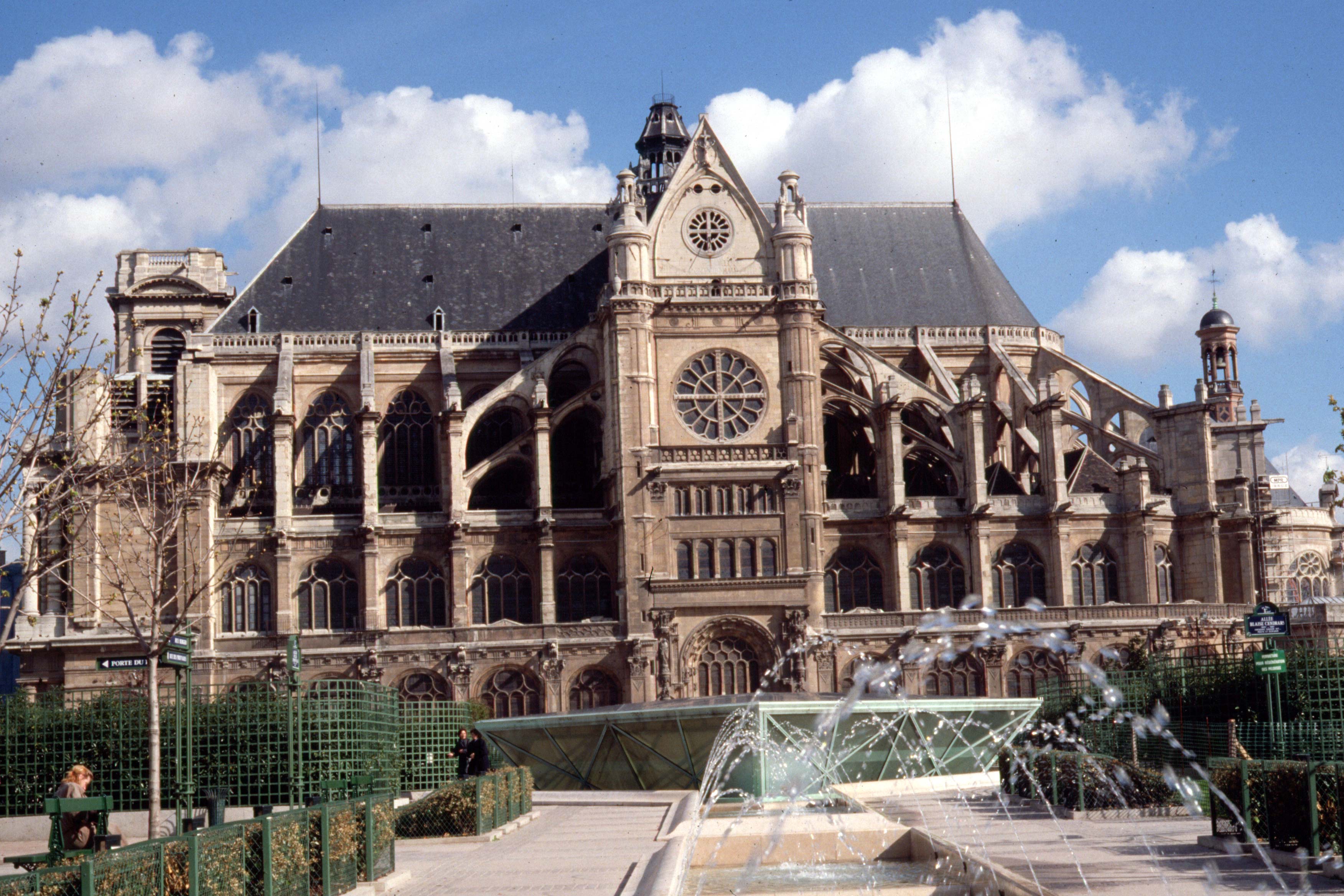 ƒglise Saint-Eustache ˆ PARIS, faade sud. Devant le jardin des Halles,
