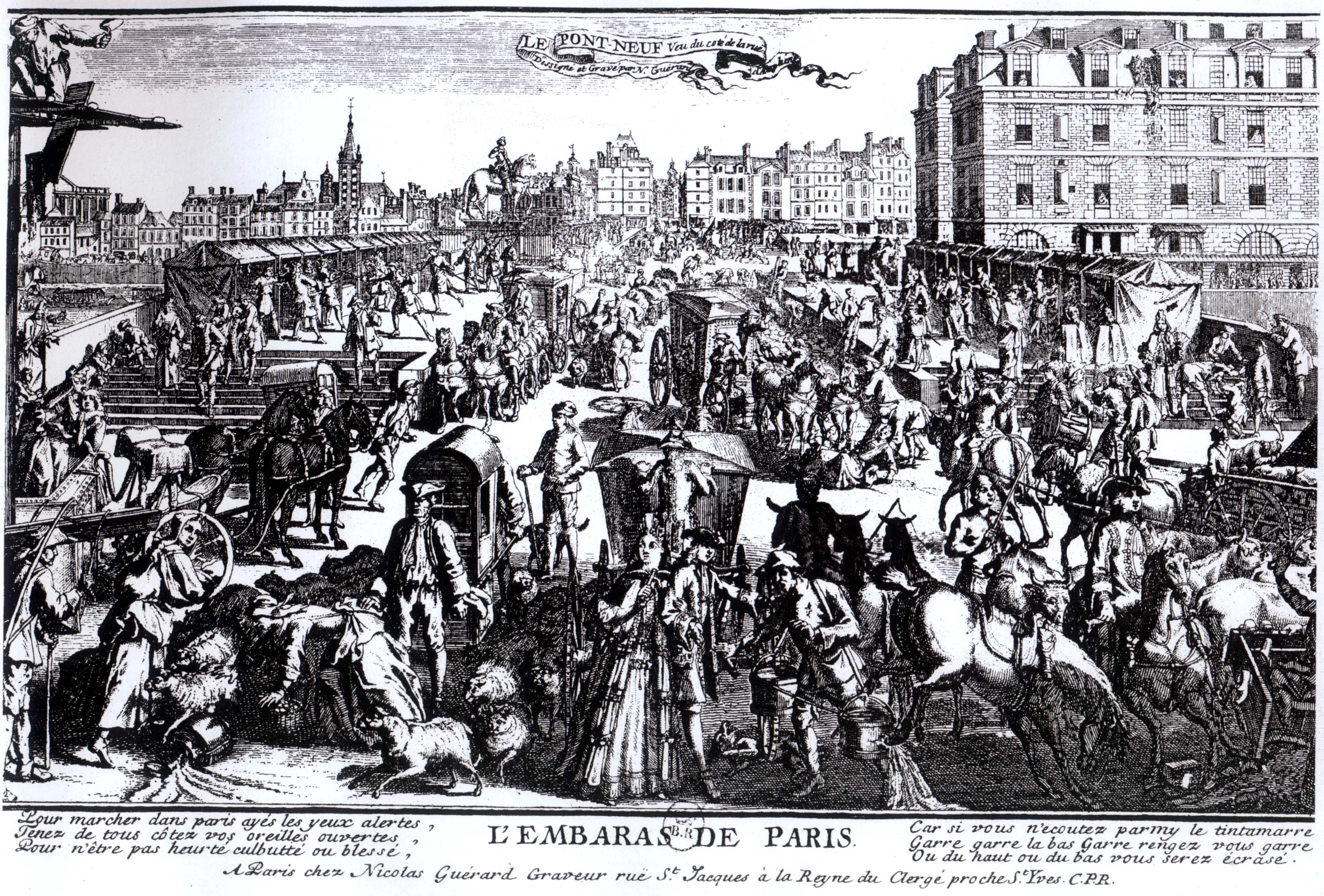 17th century Paris, seen from rue Dauphine. Gravure de Nicolas Girard
