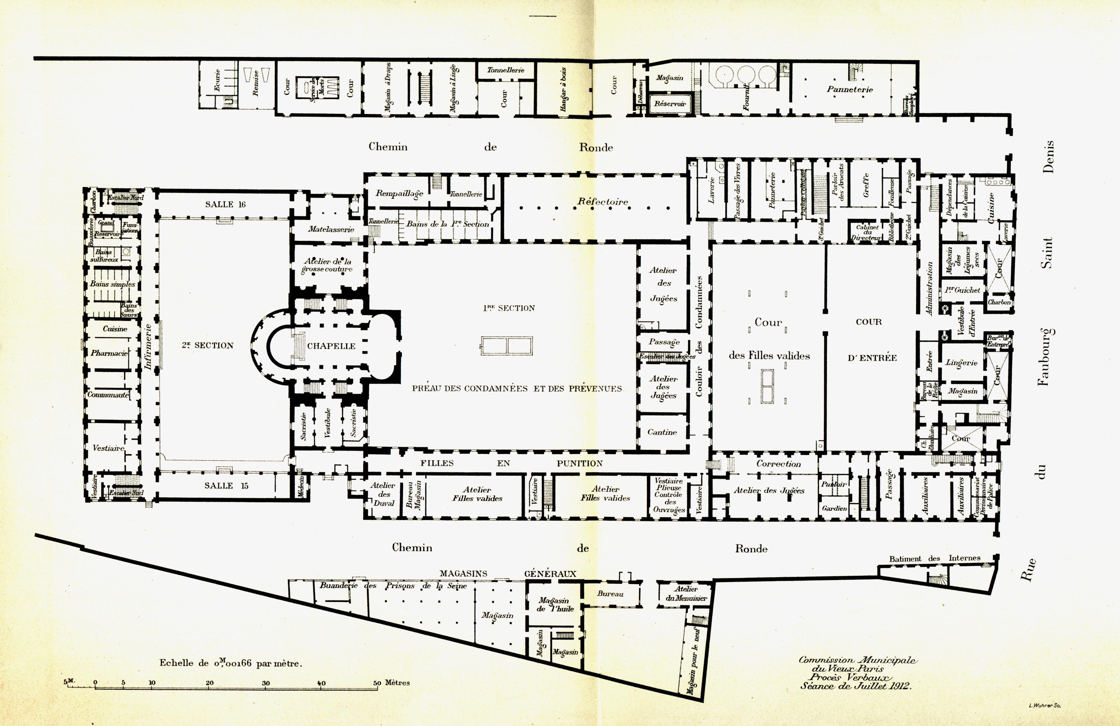 Plan de la Maison d'arrêt et de correction de SAINT-LAZARE, Juillet 1912. dressé par la Comission Municipale du Vieux Paris.