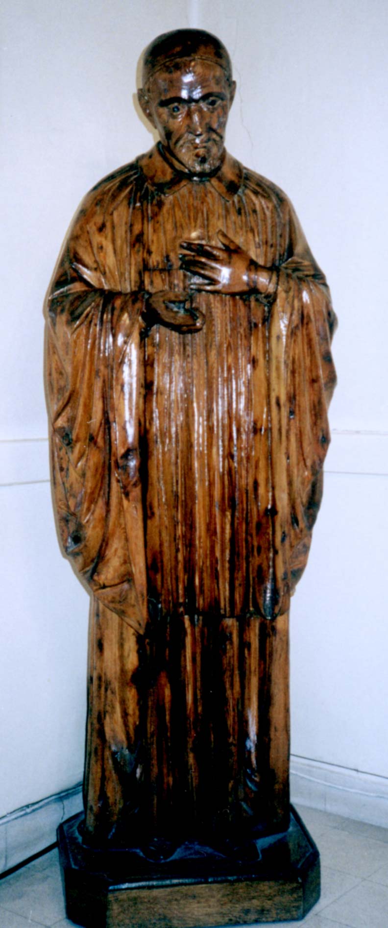 Wooden statue, Vincent de Paul standing; original in Vincentian house, Damascus