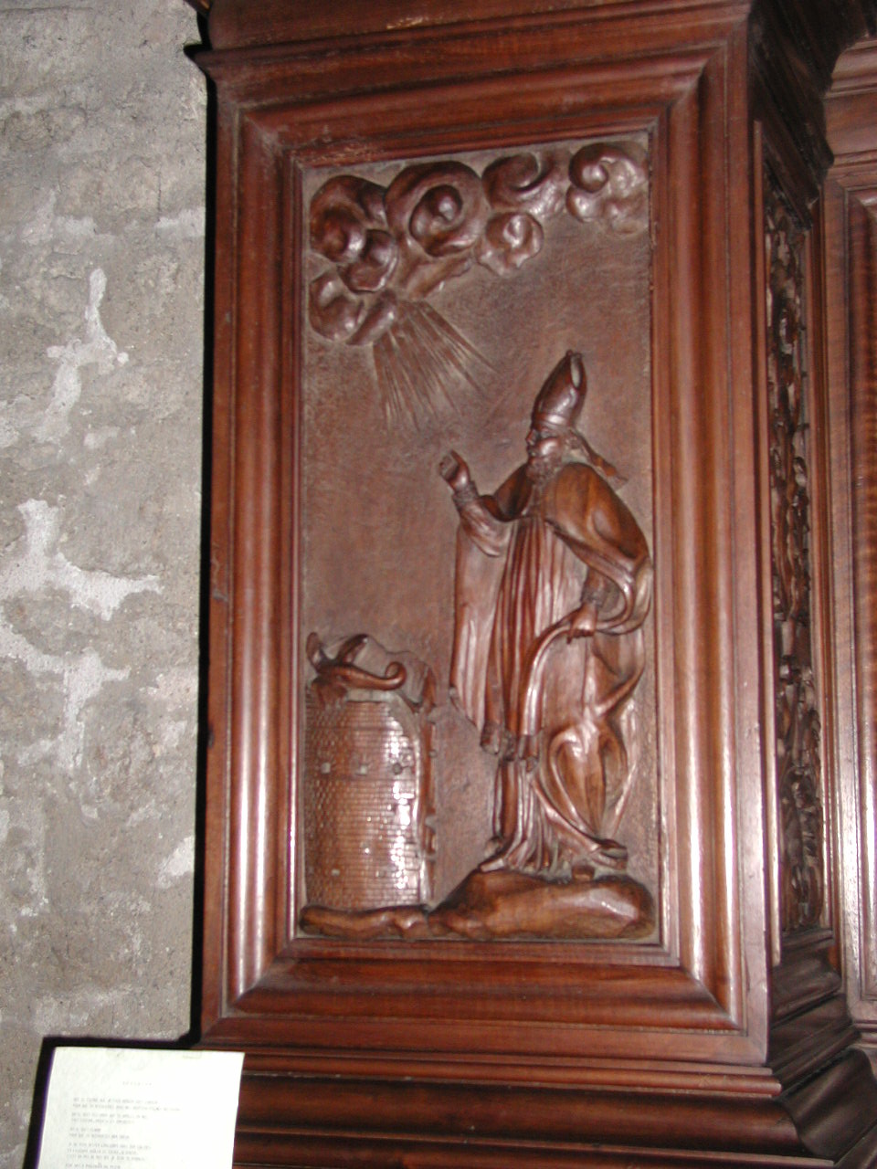 Perigueux, St Etienne, old seminary altar, bishop.JPG