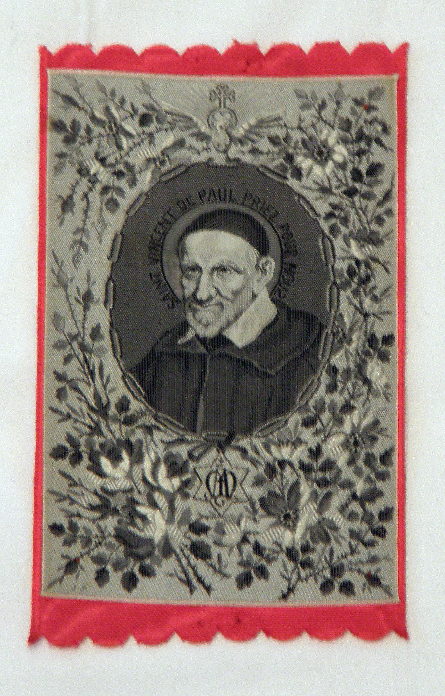Vincent de Paul, silk print; French text: Pray for us; original in Vincentian museum, Vincentian motherhouse, Paris