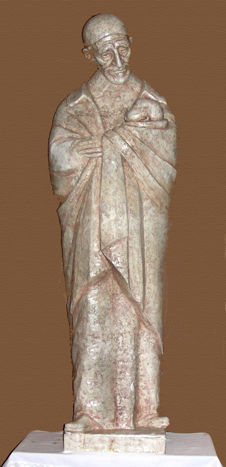 Marble statue, Vincent de Paul and infant, original in Vincentian parish, (Slovene province), Toronto