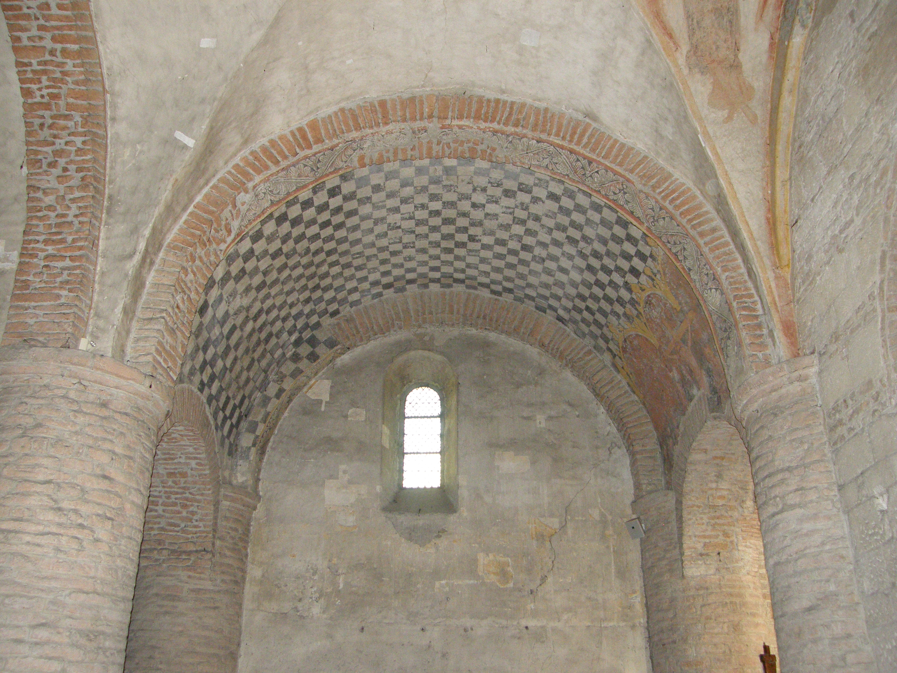 Tournus, church, checkboard paintings.JPG