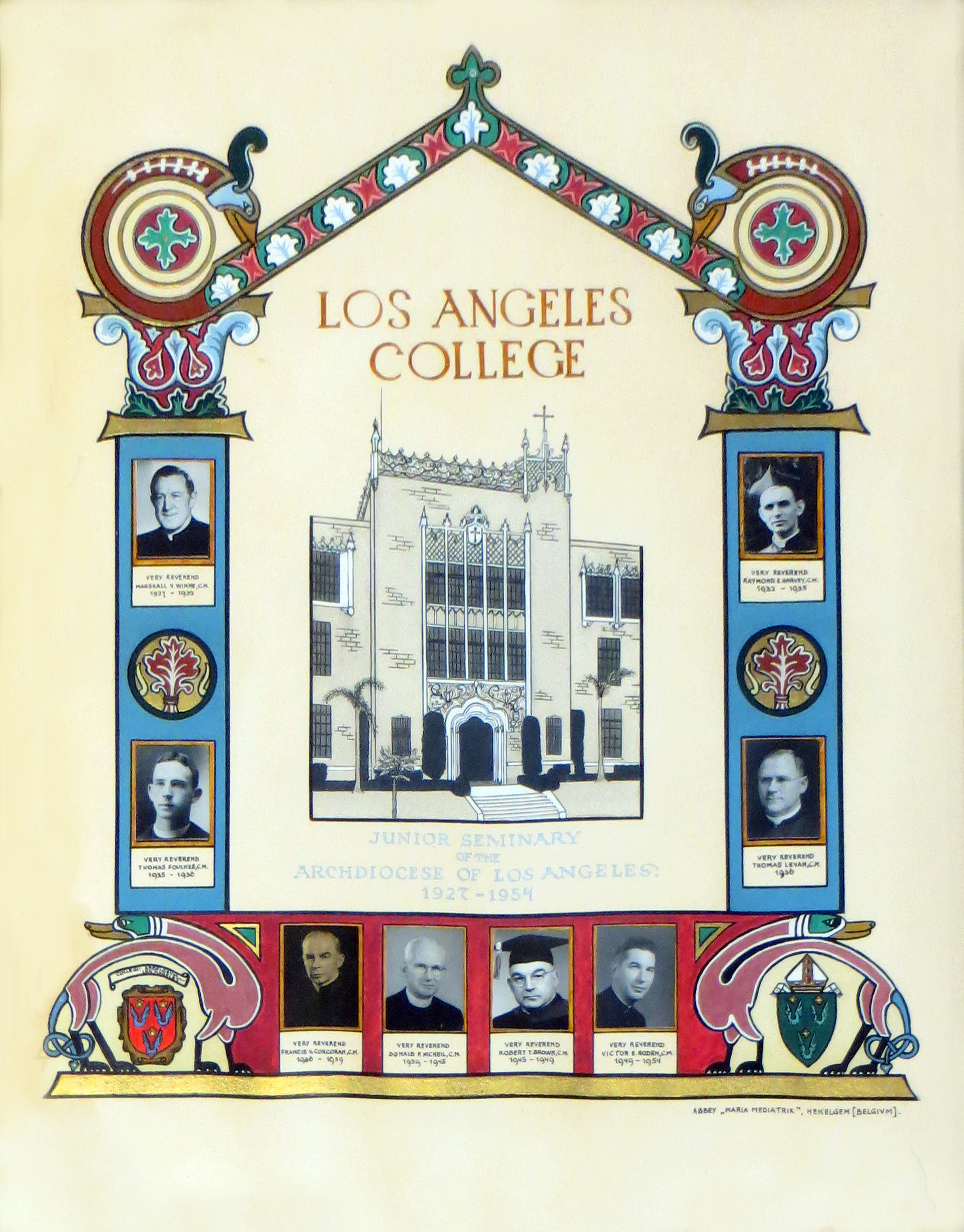 Hand painted paper, with portraits of rectors, 1927-1954; commemorating transfer of minor seminary to San Fernando; from Maria Mediatrix abbey, Hekelgem, Belgium In DRMA, Chicago