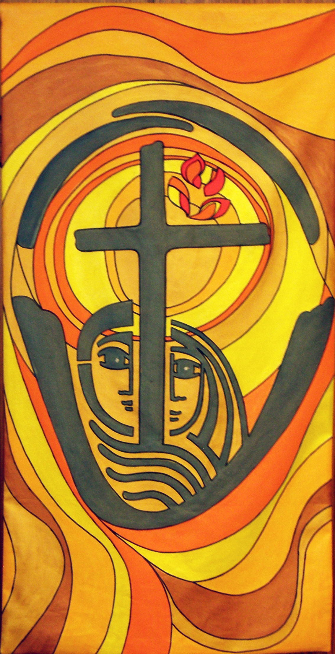 Batik wall hanging, faces of Vincent de Paul, Louise de Marillac