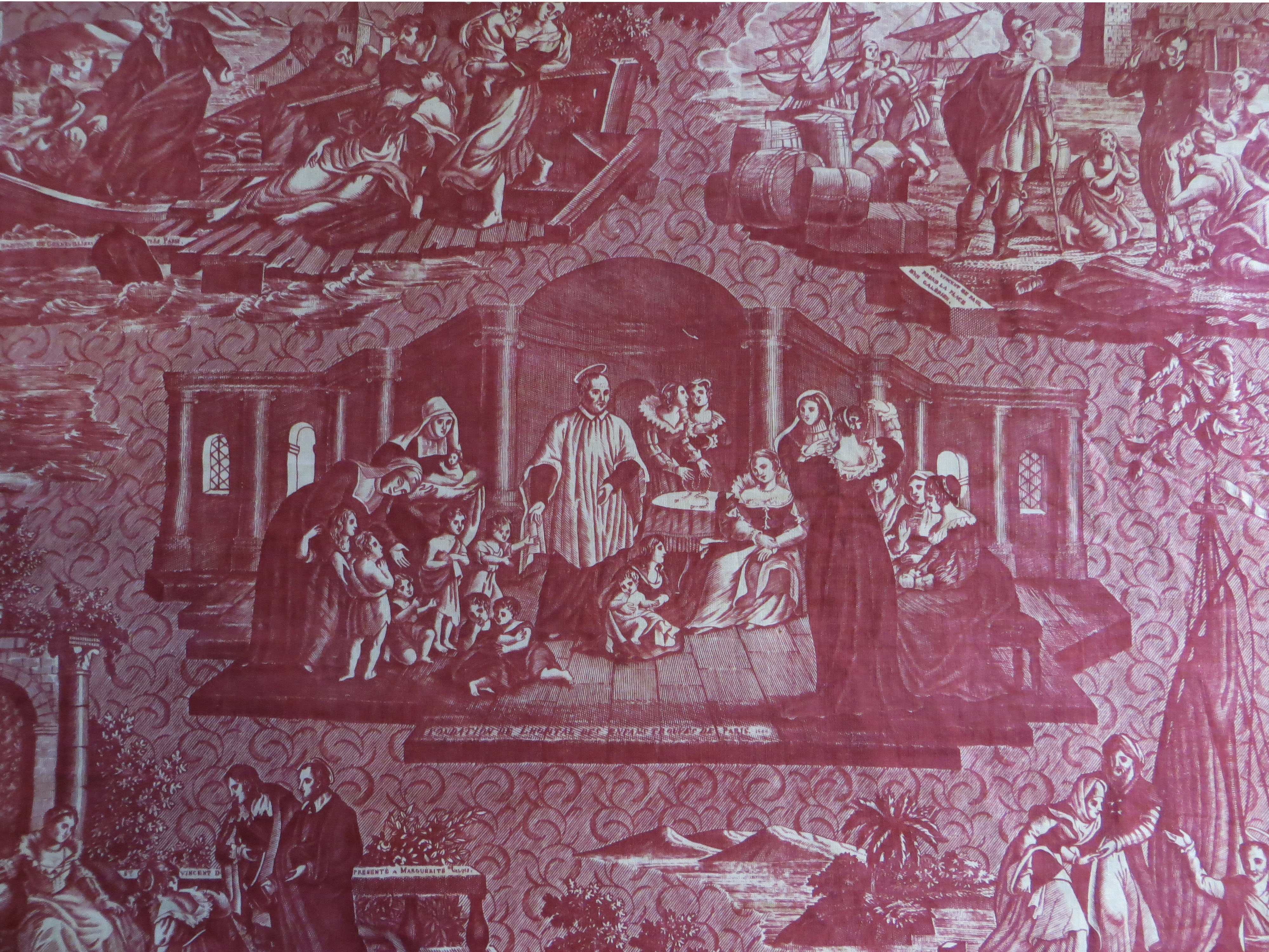 DePaul University collection Five repeated patterns on printed cotton cloth, used as a curtain