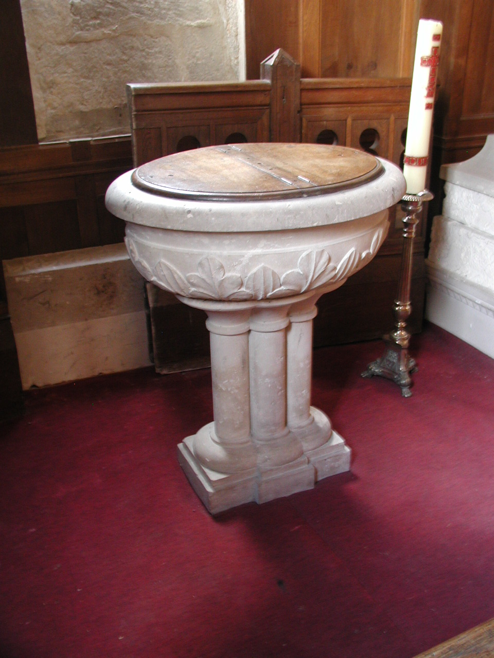 Villepreux, church, Baptismal font.JPG