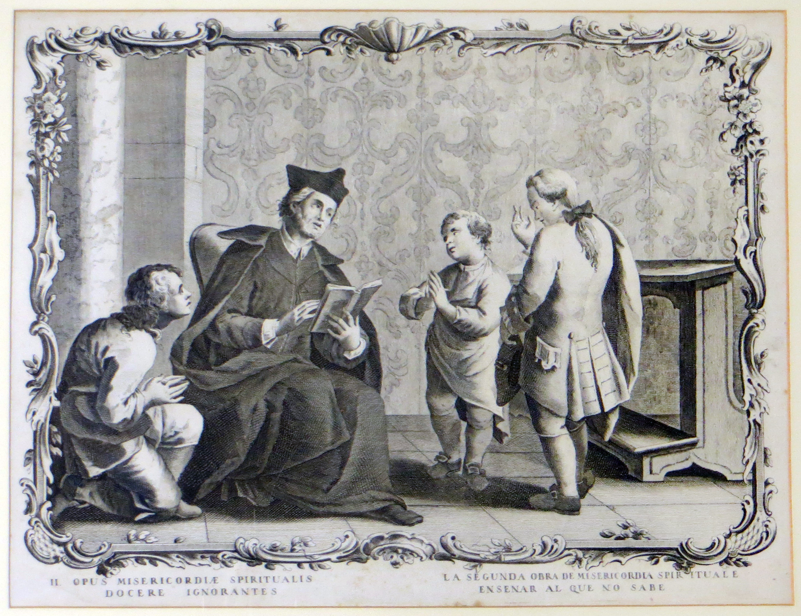 18th century engraving, Latin and Spanish text; in CM house, Turin; priest may be a CM (based on the style of his collar)