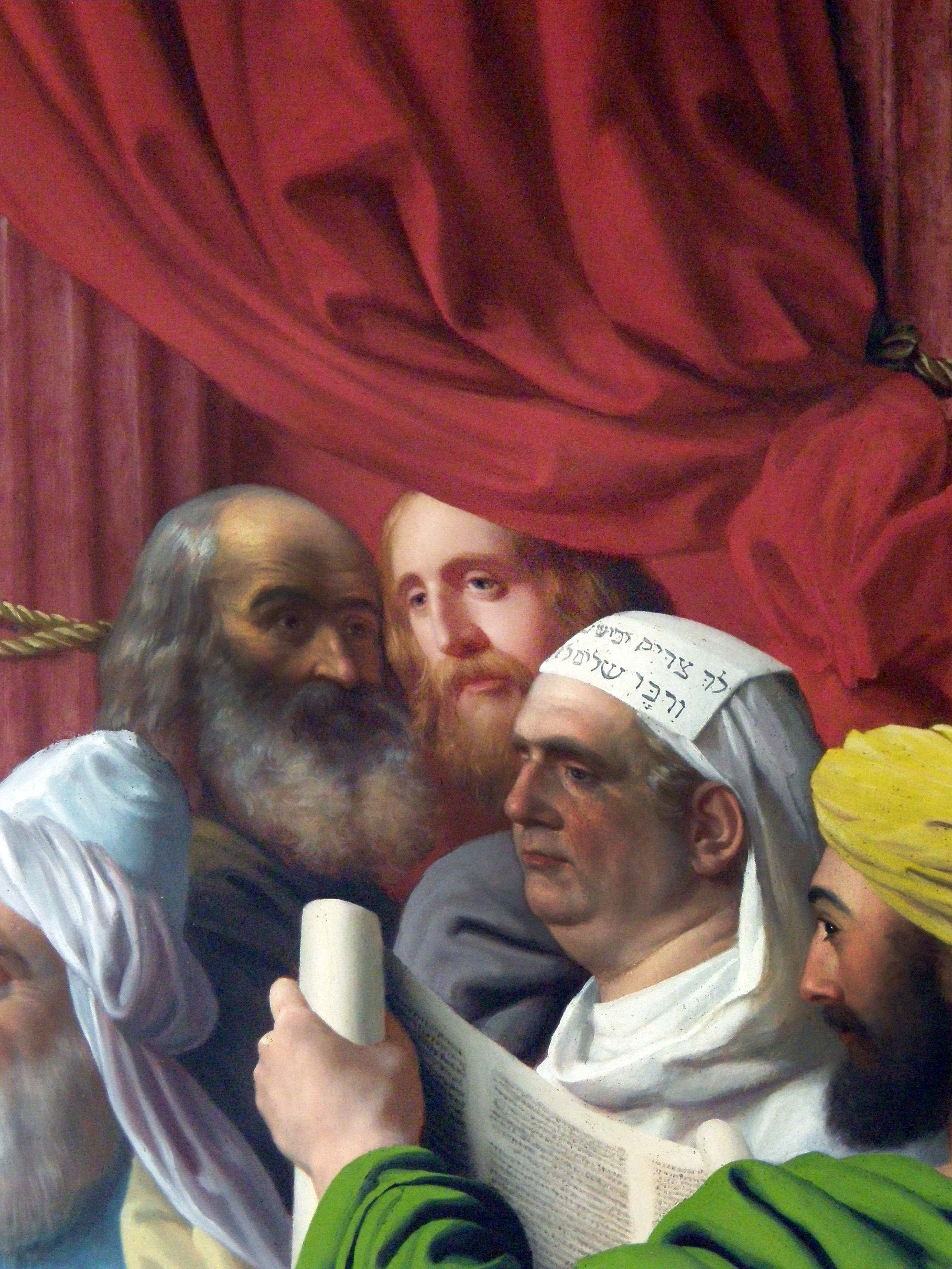 Behind red curtain, blond beard